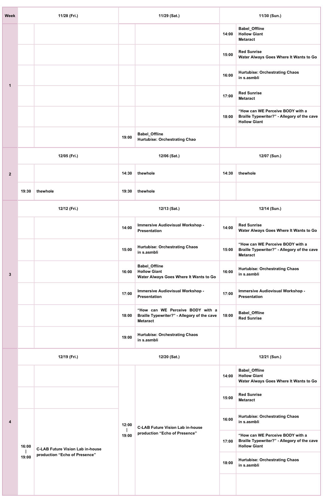 Exhibition works include: Dec. 19-20 “C-LAB Future Vision Lab in-house production, Echo of Presence”.