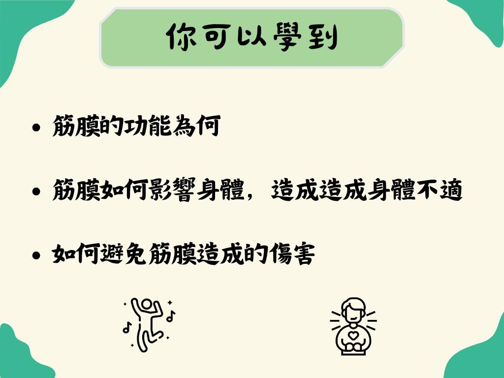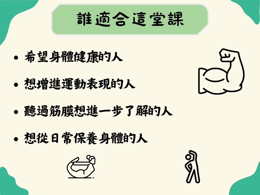 近年講筋膜的書多了,但你真的知道筋膜在身體的功能嗎? 了解筋膜的整體性,便能找到身體不適的原因。 短短一個半小時,不只聽懂筋膜、更能體感覺察筋膜的力量。