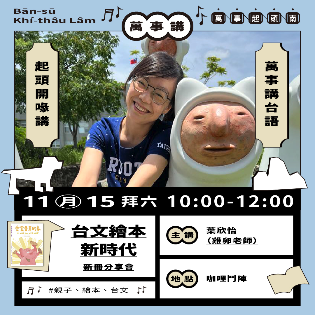 主講|葉欣怡(雞卵老師,是國校仔台語老師,mā 是台南公報社囡仔古老師)