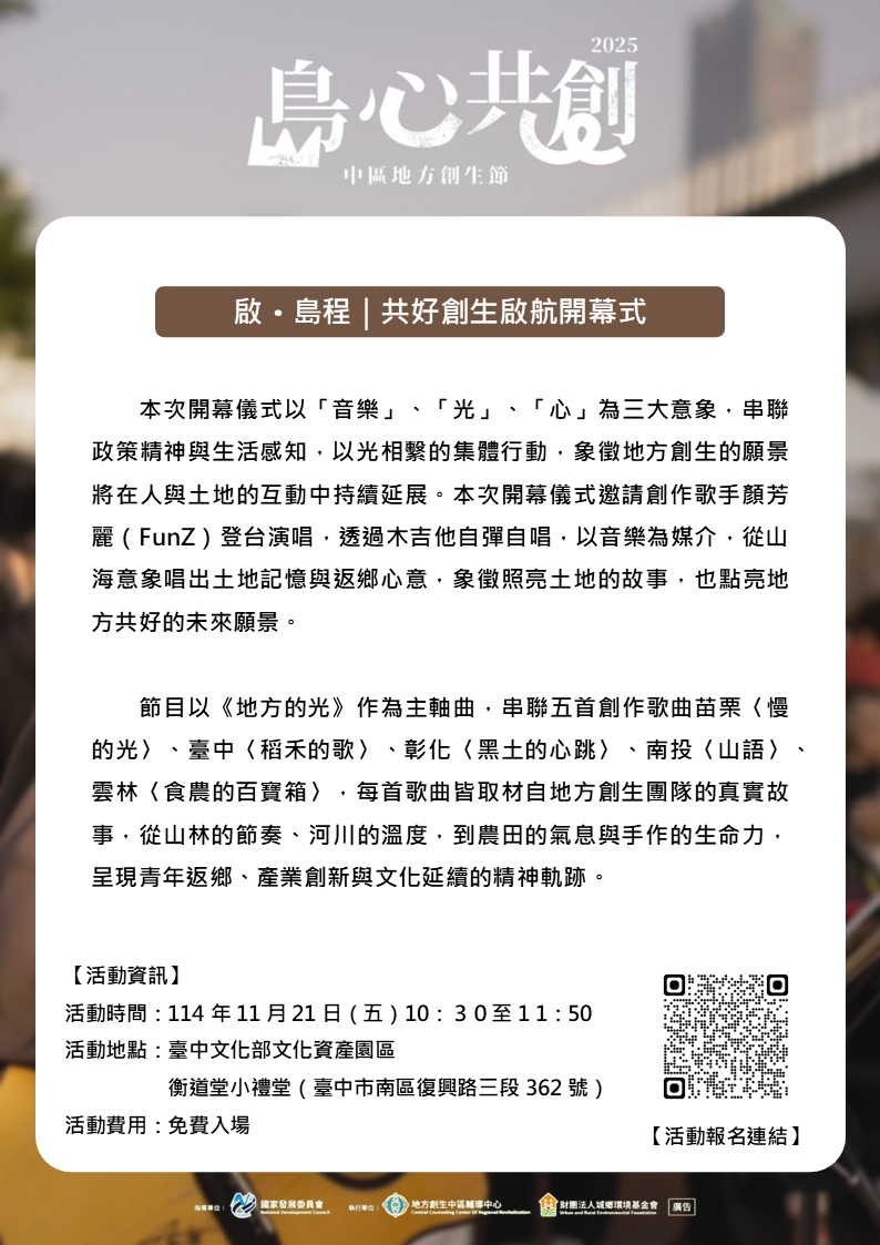 🌟【島心共創 中區地方創生 主題展覽】🌟