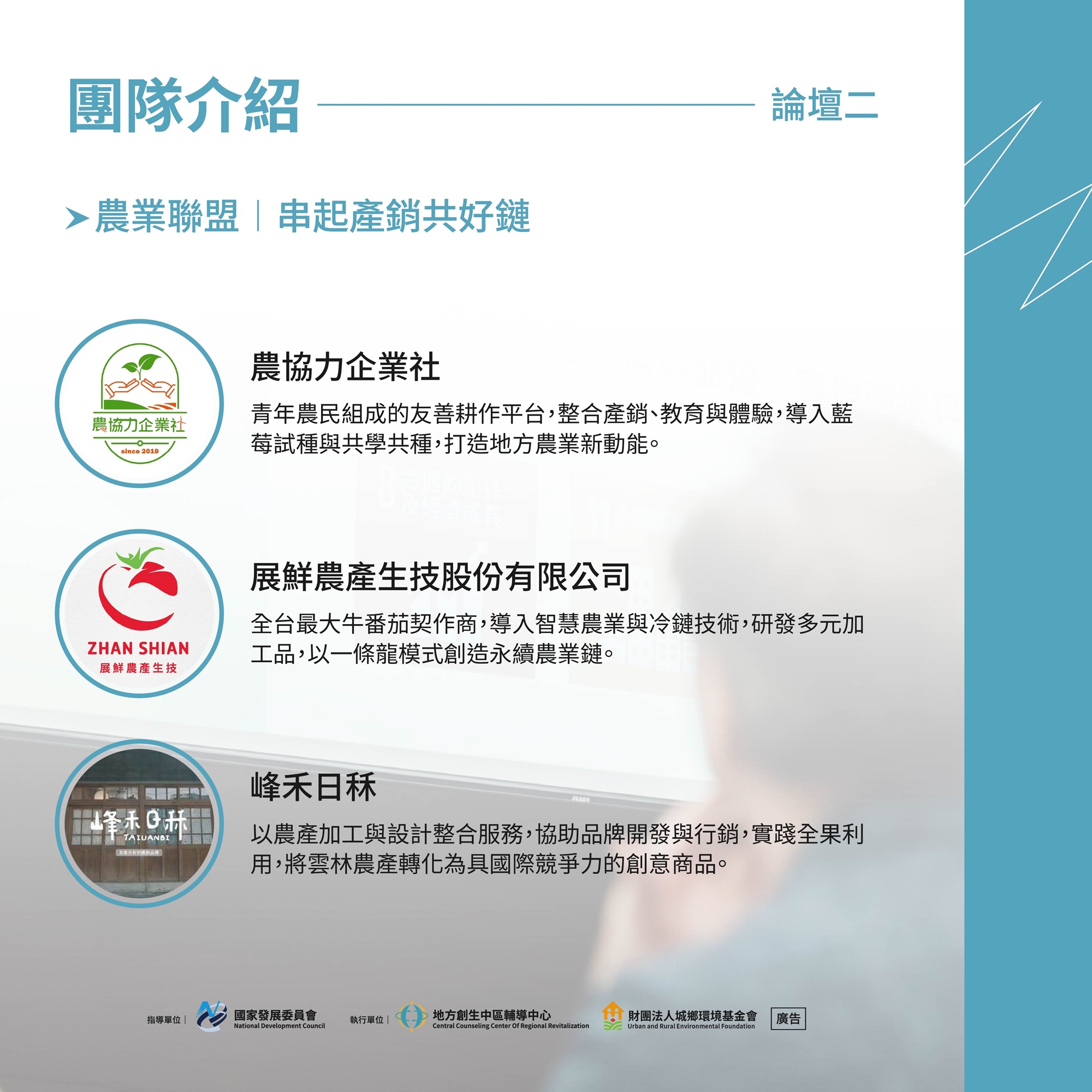 三大主題論壇:🌟 設計轉譯 🌾 農業聯盟 🏠 場域活化