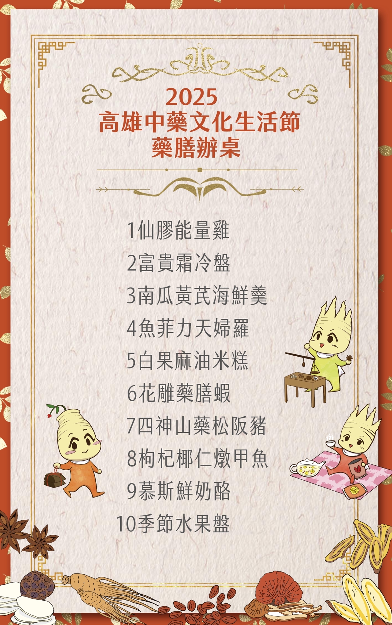 「港都藥膳創意辦桌」,透過節氣藥膳料理、說菜秀,推廣藥食同源文化,打造結合養生、知識、體驗漢方餐桌盛宴,實踐中藥生活化與在地化。