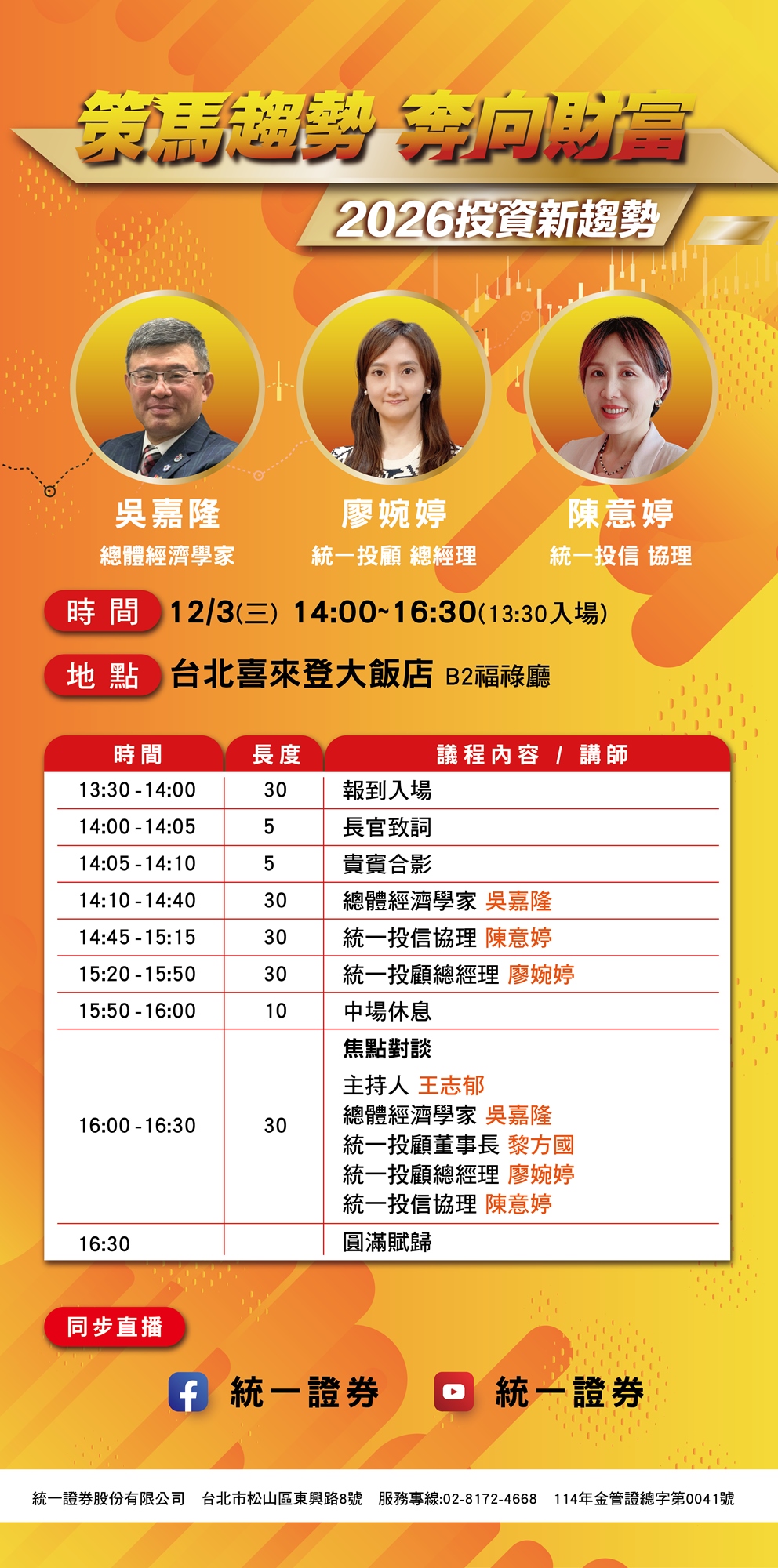 統一證券策馬趨勢奔向財富2026投資新趨勢