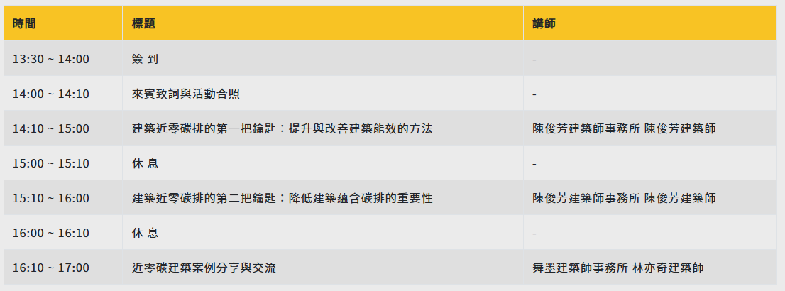 培訓活動邀請相關準/專業從業人員和一般民眾共同參與,推廣淨零建築知能和提升準/專業從業人員專業性,期待在不同族群參與下,推動淨零建築跨域整合之教學資源累積與擴散,並且進一步促成淨零建築跨領域人才培育之目的。
