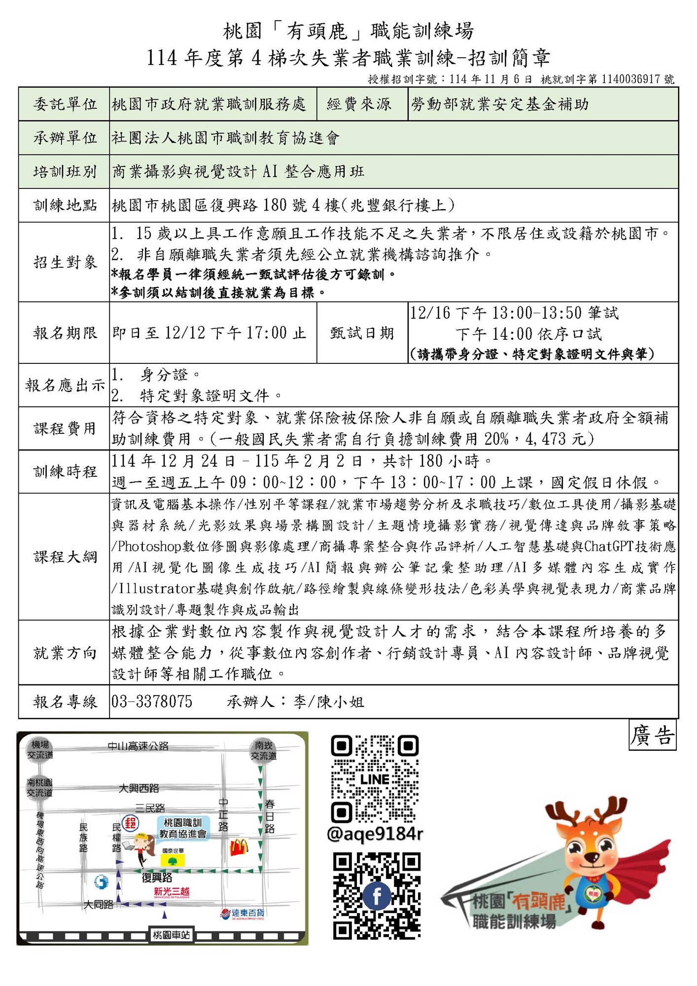 114職前訓練-商業攝影與視覺設計AI整合應用班(請至協會現場報名)