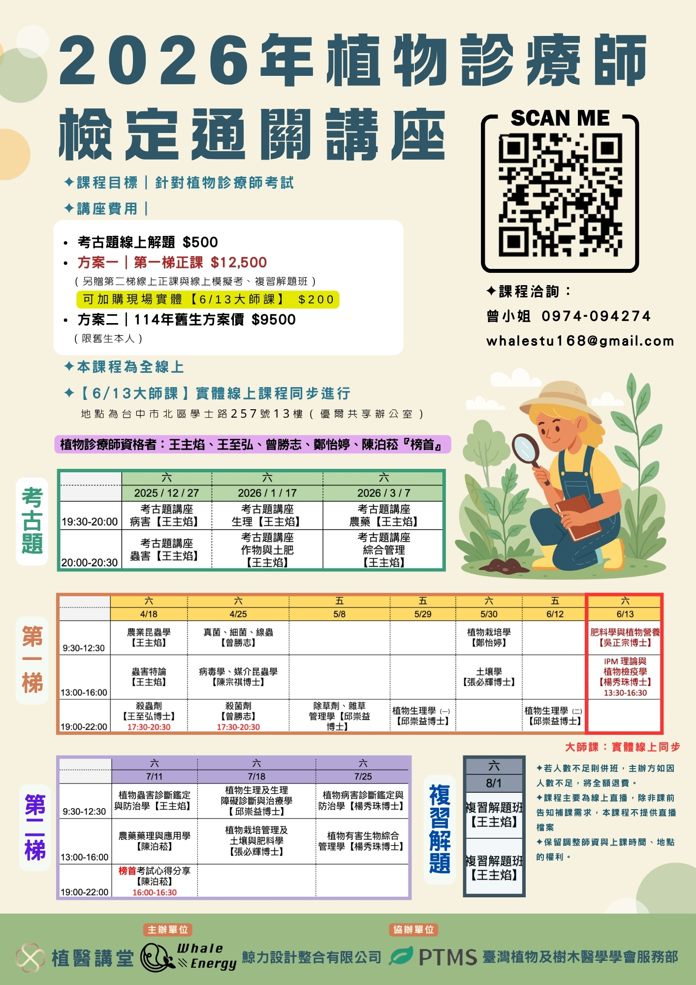 2026年植物診療師檢定通關講座✦課程目標|針對植物診療師考試✦本課程為全線上✦【6/13大師課】實體線上課程同步進行