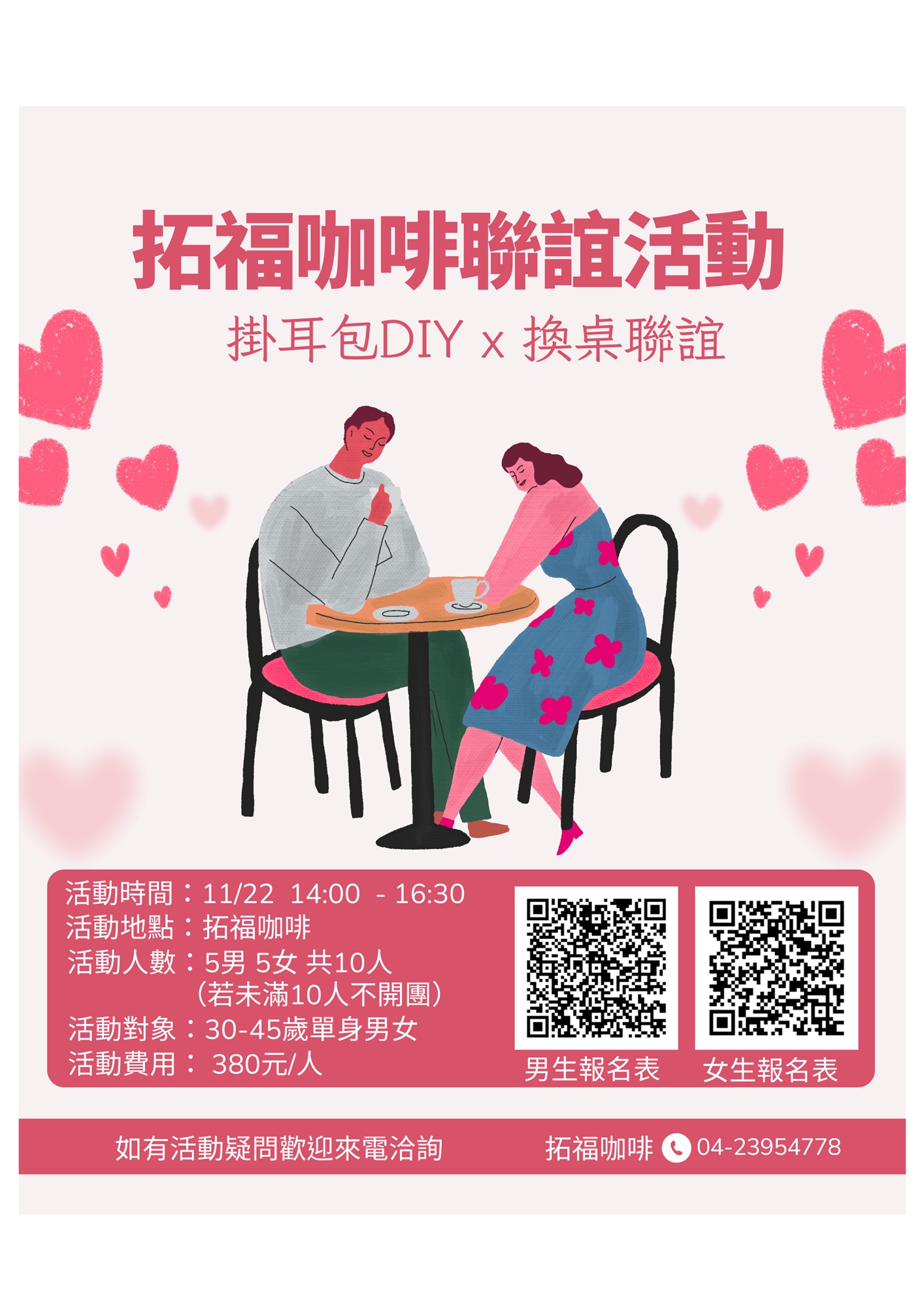 活動人數:5男 5女 共10人(若未滿10人不開團)