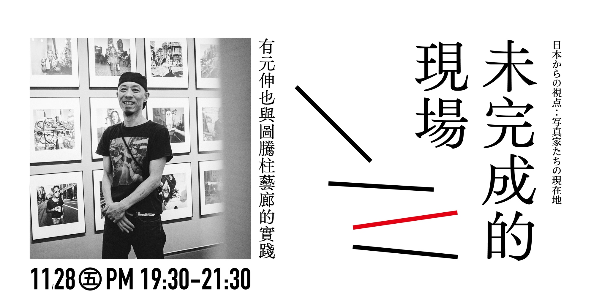 這月底他將來台北 1839 藝廊舉辦個展,趁此機會,我們特別邀請他親自分享他長年經營的獨立攝影空間 Totem Pole Photo Gallery 的故事。這是他少見地以「實踐」為核心的公開講座,關於創作、空間、社群與如何以攝影生活,這正是最難得、也最貼近他內心的一面。