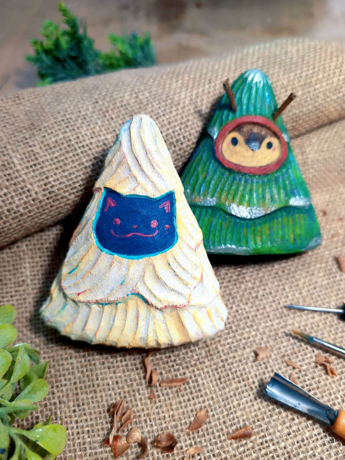 ✦ 成品特色 每棵小樹都帶有樟木的天然紋理與香氣,搭配上色後會呈現不同個性,有的溫暖柔軟、有的鮮豔活潑。 每件作品都獨一無二,是節慶季節裡最有溫度的小禮物。 ---