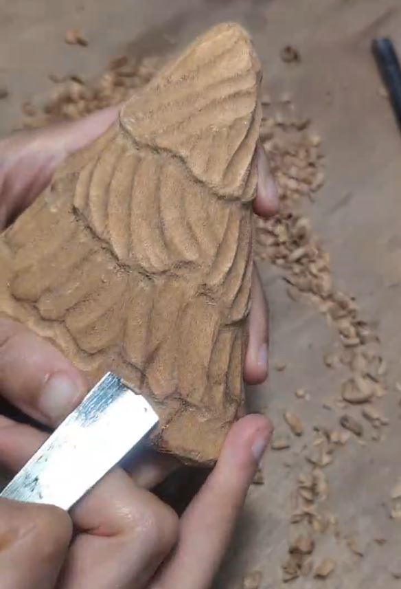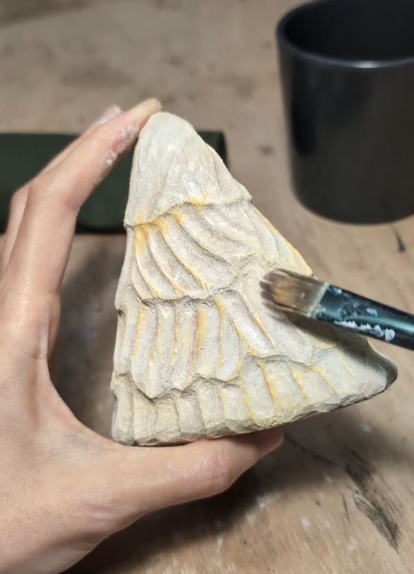 4. 雕刻階段(約 2 小時) 循序漸進地刻出立體造型,從大面削切到細部調整。