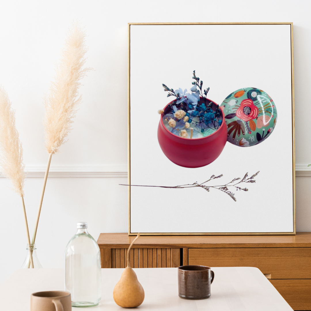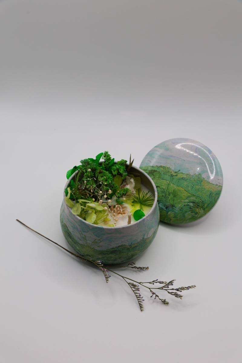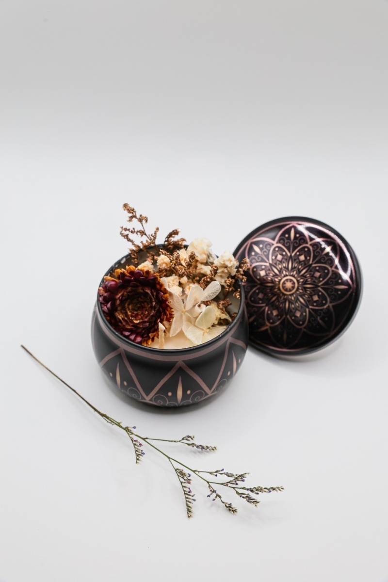 永生花裝飾:每款蠟燭都以精選的永生花進行創意裝飾獨一無二,不同的花卉與顏色交織出獨特的視覺效果。