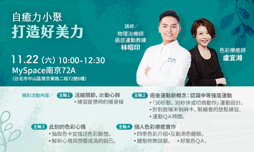 ♥️具有物理治療師與運動教練資格的林昭印,用專業知識與實際經驗,帶領癌友與照顧者一起練習適合日常的運動,打造遠離復發好體能。