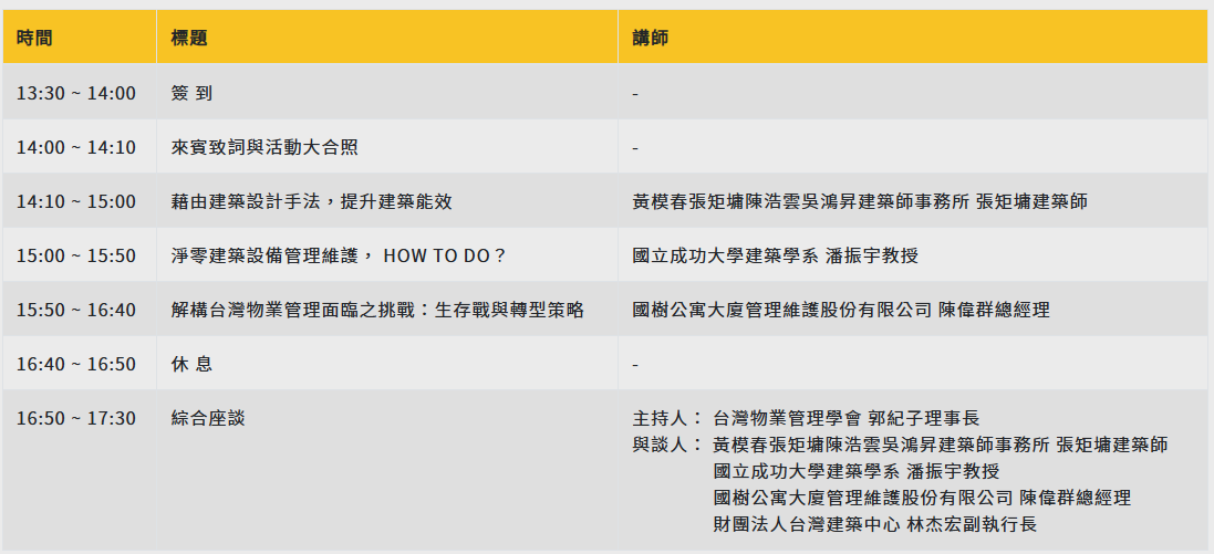 培訓活動邀請相關準/專業從業人員和一般民眾共同參與,推廣淨零建築知能和提升準/專業從業人員專業性,期待在不同族群參與下,推動淨零建築跨域整合之教學資源累積與擴散,並且進一步促成淨零建築跨領域人才培育之目的。