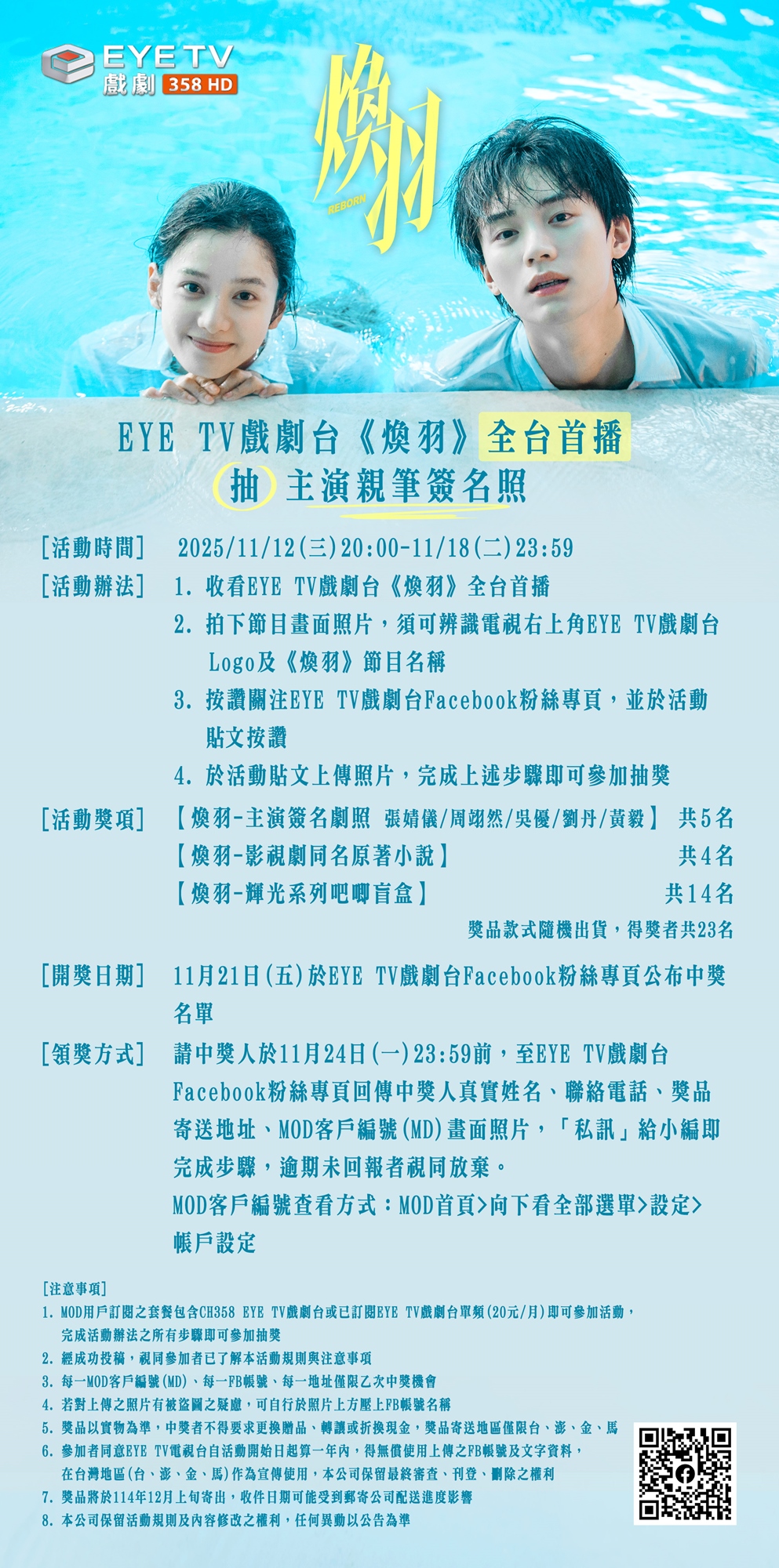 EYE TV戲劇台《煥羽》全台首播 抽主演親筆簽名照