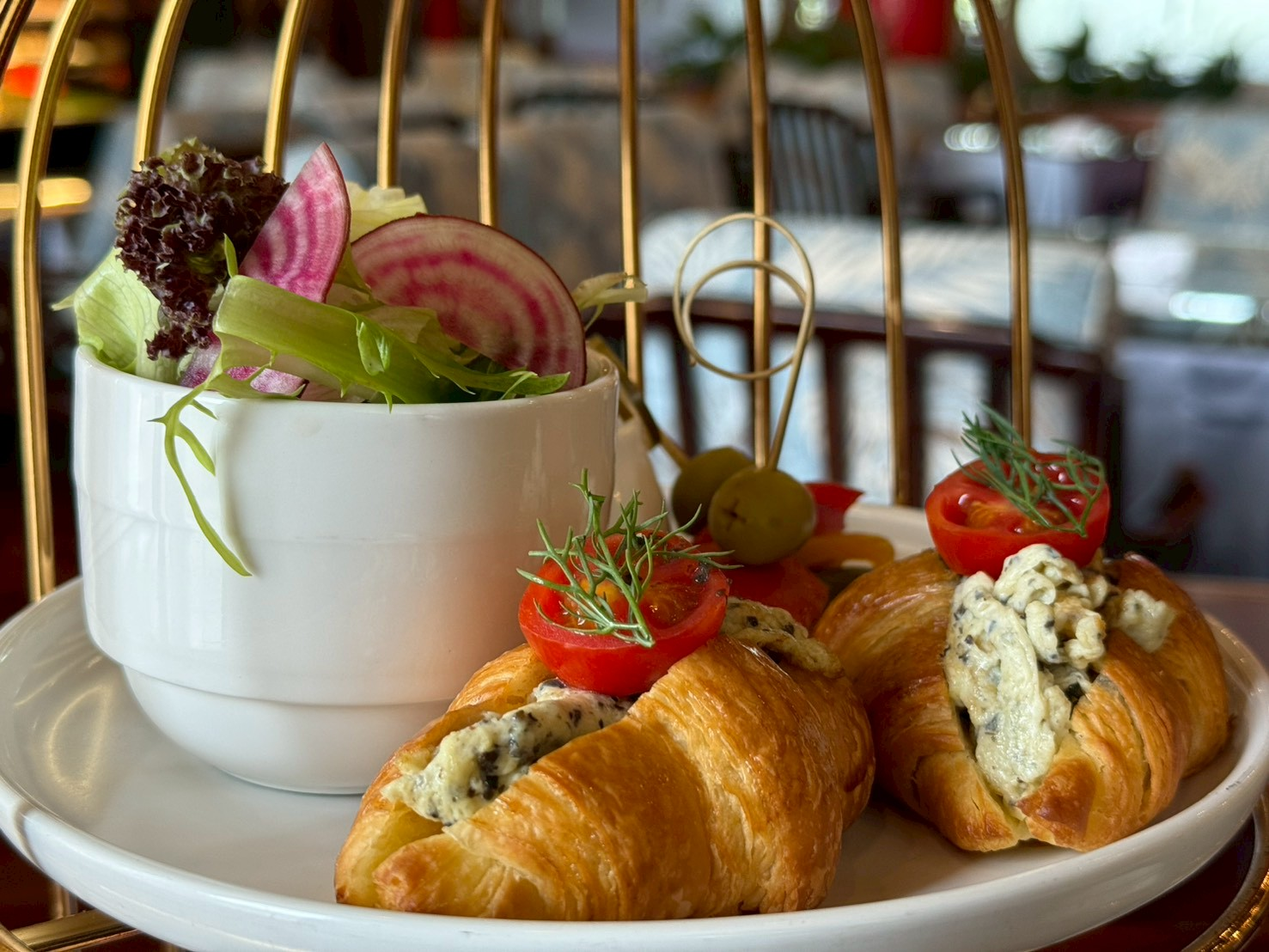 上層:聖誕午後BLT 總匯三明治、羅勒魚子小花籃、冬日雪人愛番茄串