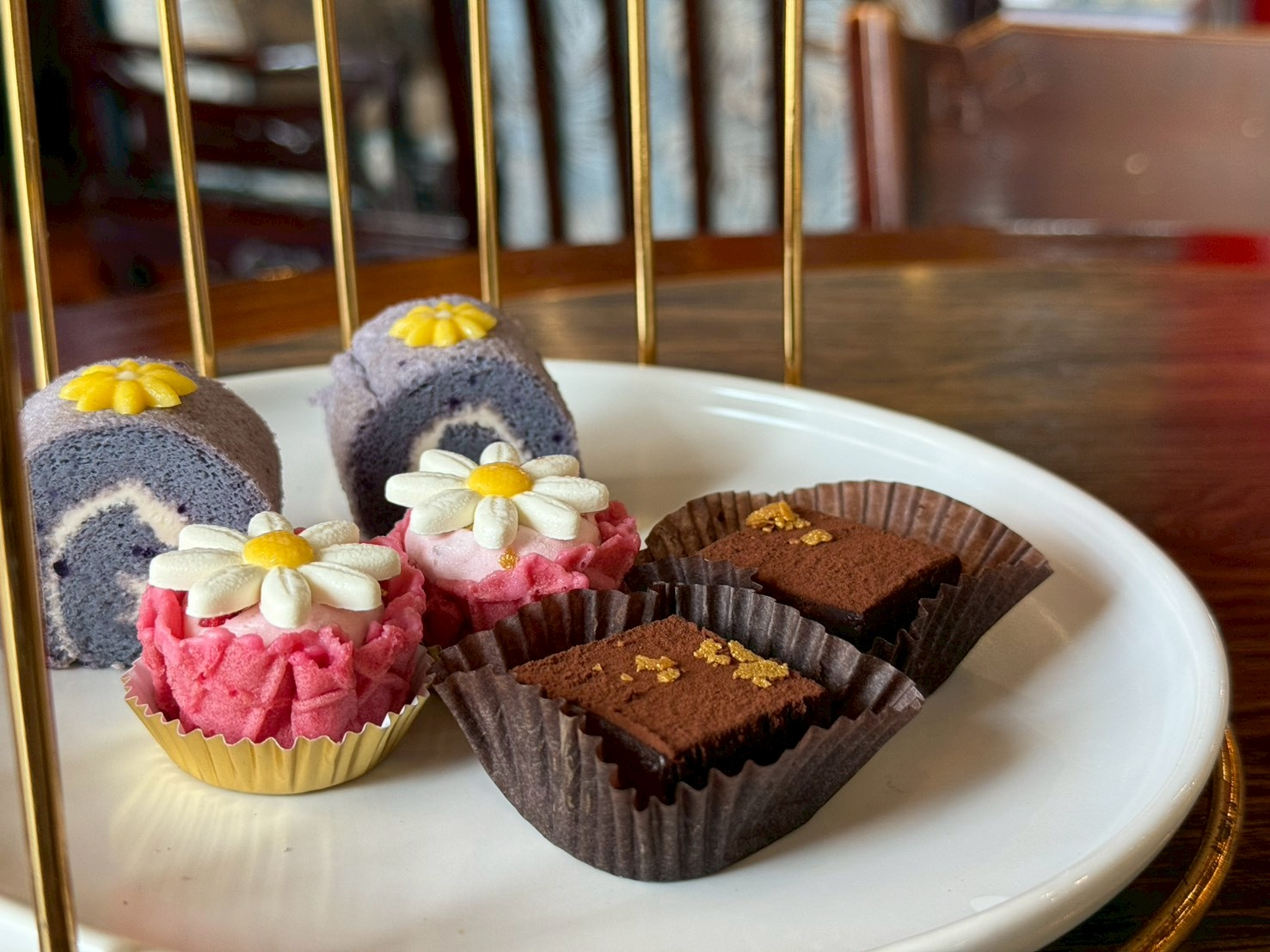 中層:唐寧洋甘菊草莓雪人杏仁塔、唐寧焦糖博士可可樹幹捲、唐寧英倫紫薯瑪德蓮