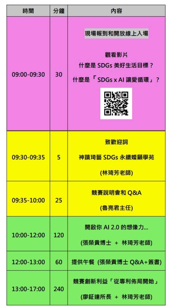 - 主辦單位:龍華科技大學、神蹟琦藝SDGs永續婚顧學苑、優樂地永續、鐵甲工業股份有限公司、達穎專利師事務所