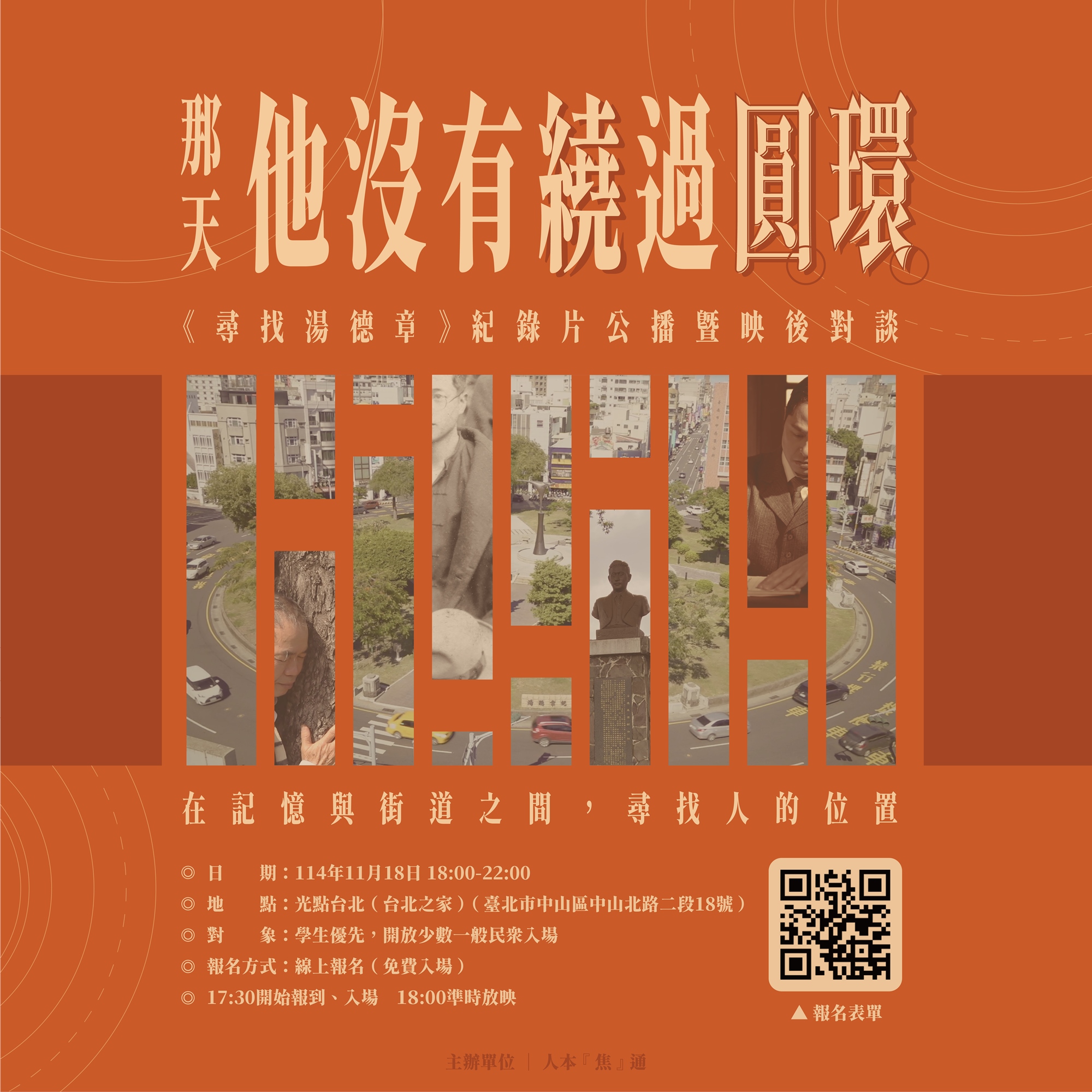 「那天,他沒有繞過圓環」——《尋找湯德章》紀錄片公播暨映後對談
