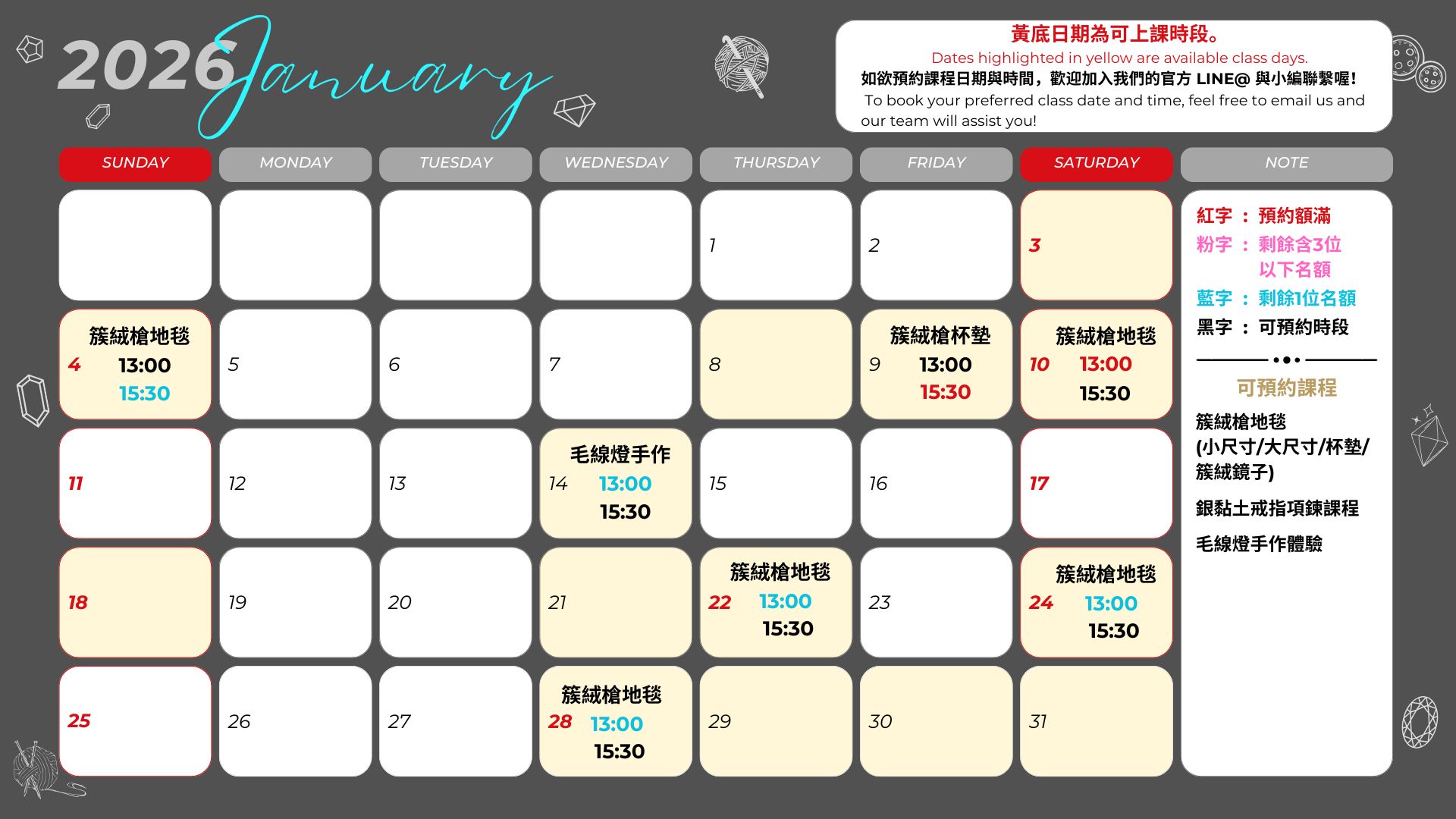 無論您是手作愛好者還是初學者,我們都歡迎您來參與,將手作成為您生活中的一部分。讓我們一起在這個時尚又舒適的空間中,享受手作帶來的樂趣和成就感!