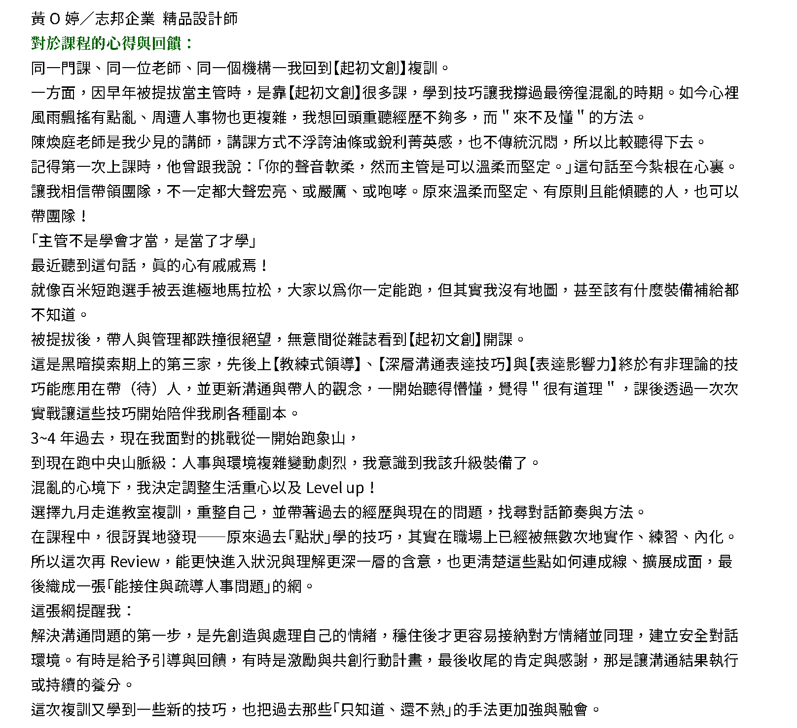 學員課後回饋