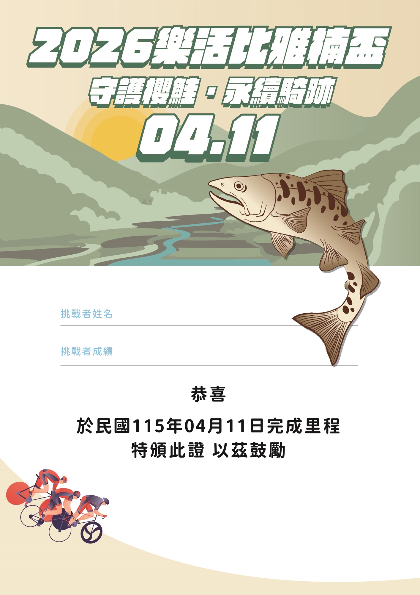 2026 第四屆樂活比雅楠盃,是一場結合自行車運動、生態保育、泰雅文化與永續旅行的公益行動。活動以臺灣國寶魚臺灣櫻花鉤吻鮭為守護核心,透過單車約騎與生態參訪,帶領參與者深入宜蘭縣大同鄉南山村,認識羅葉尾溪櫻花鉤吻鮭自然復育成果,並理解山林與溪流生態的重要價值。