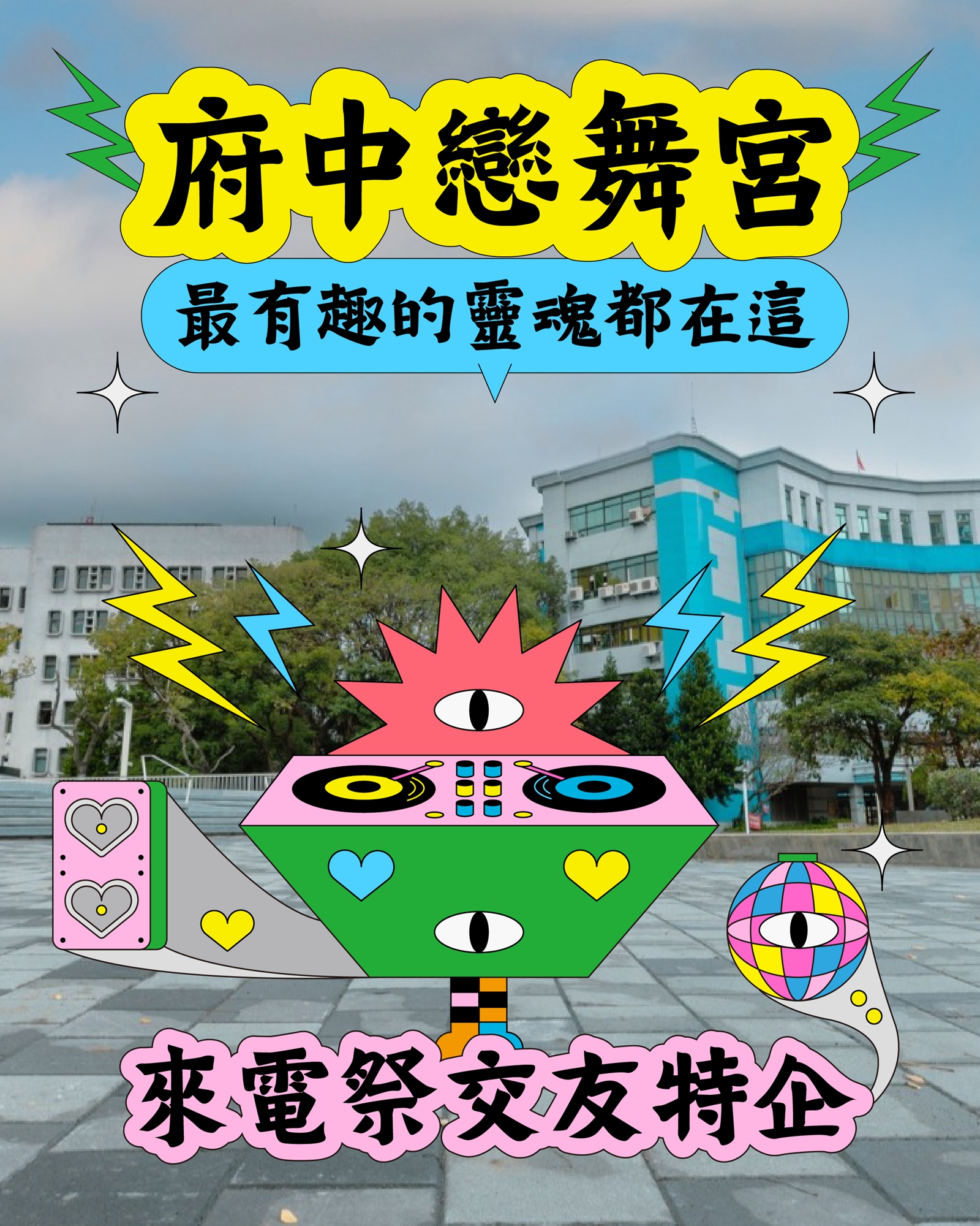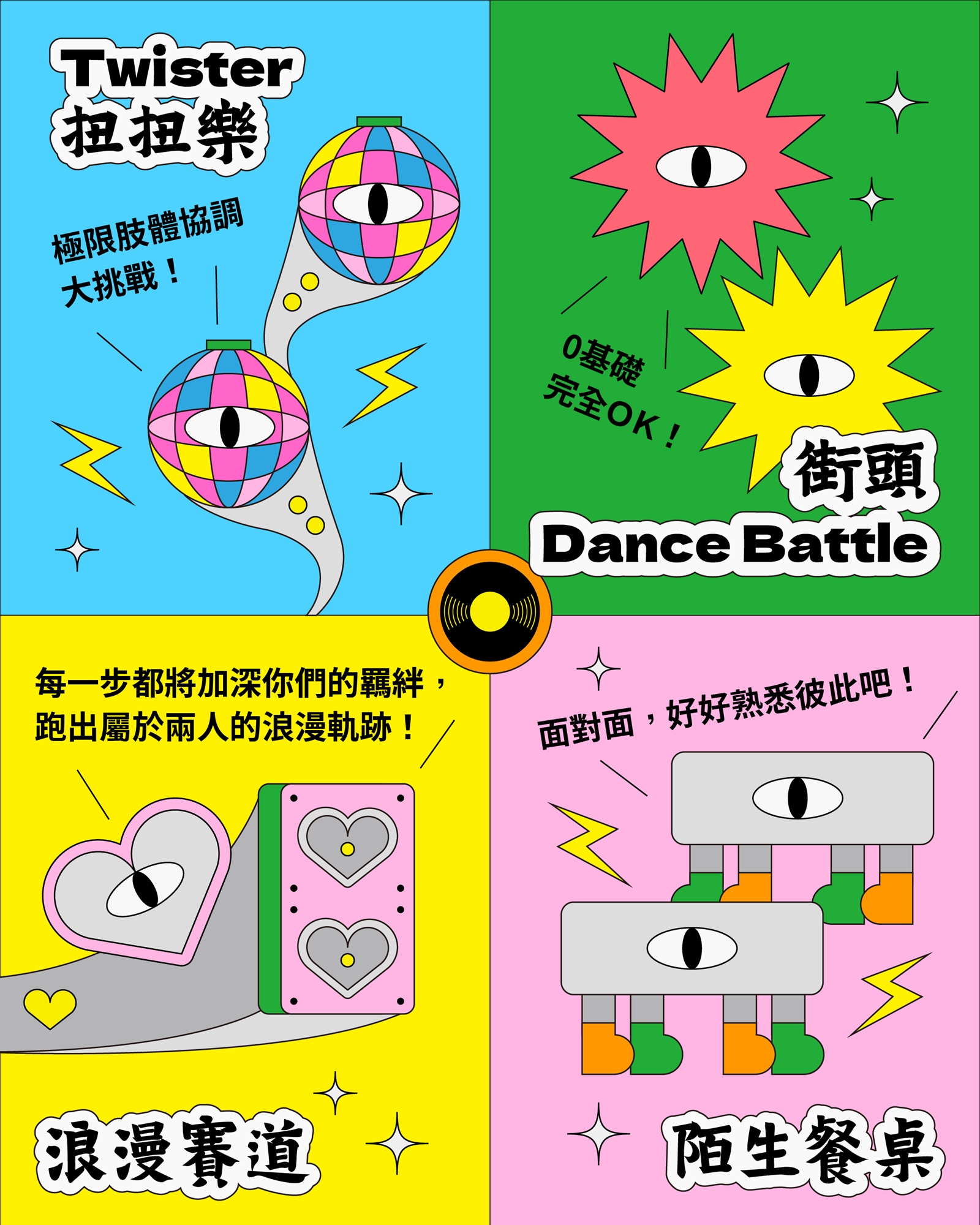 80分鐘,4個互動主題,讓身體動起來、舞跳起來,把笑容開到100%,各種花式交友,看誰才是府中交友王!參與程度越高就有機會獲得來電祭 Dan Dan Festival市集/占卜抵用券!新的一年,在府中一起跟新朋友吃喝玩樂,聽音樂!