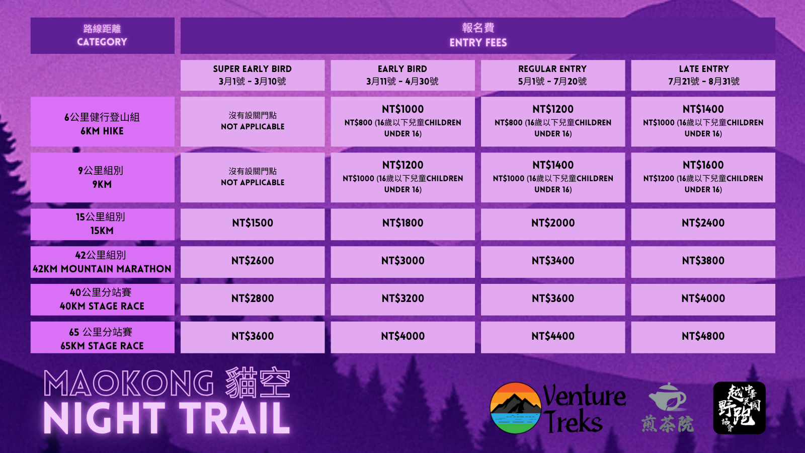 All other related event information can be found on our website here: MAOKONG NIGHT TRAIL
