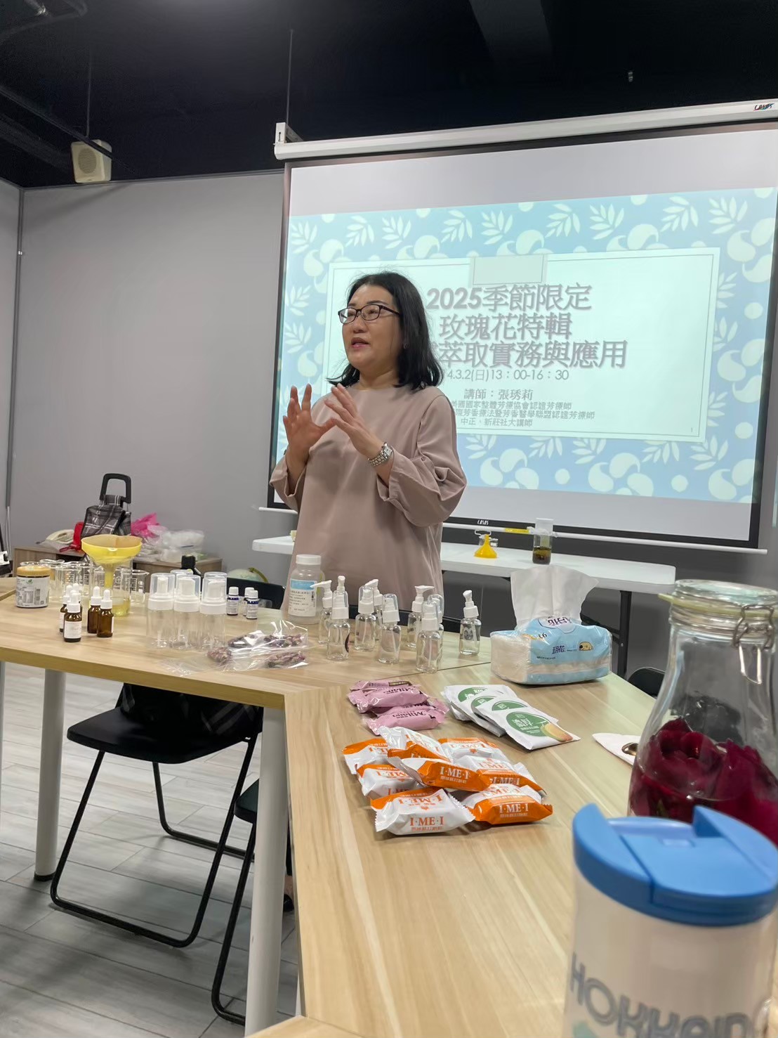 在《2026 玫瑰花特輯》中,你將親眼看見玫瑰純露與玫瑰油項的萃取示範,並實際將這些花朵精華,運用在日常芳香保養之中。課程中將完成三款玫瑰手作作品,讓花香不只停留在教室,而是回到生活裡,持續溫柔地照顧你。