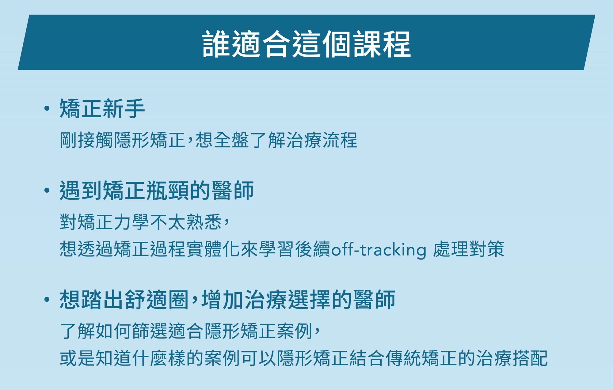 👉已接觸矯正,想學習後續 off-tracking 處理對策的醫師