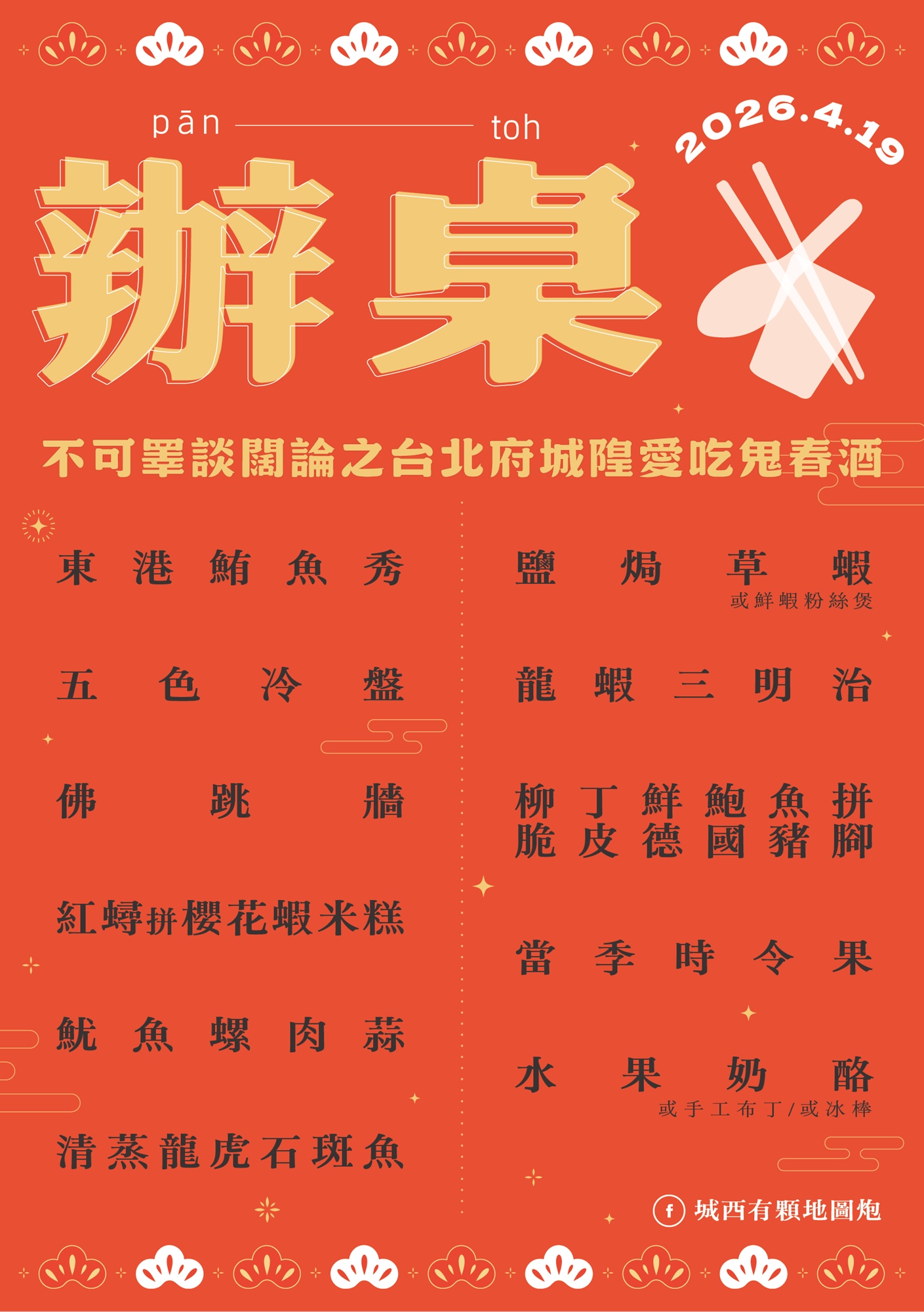 這是一場歡迎每個人的辦桌。不論性別、性向,只要你懂得尊重彼此、珍惜美食,這裡是大家的主場。讓我們在府城隍的見證下,吃一桌又體面又瘋、也有人情味的台灣辦桌。