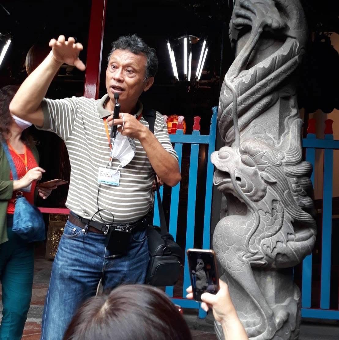 樹王文史工作室負責人,同時也是臺中市屯區社區大學講師、中市府文化局文化志工培訓講師、文化總會中部辦公處文化志工培訓講師、樂成宮導覽志工隊講師等,長期透過講解有關古蹟建築、民間信仰、寺廟藝術等,引領更多民眾能深入學習臺中在地知識和豐富文化。