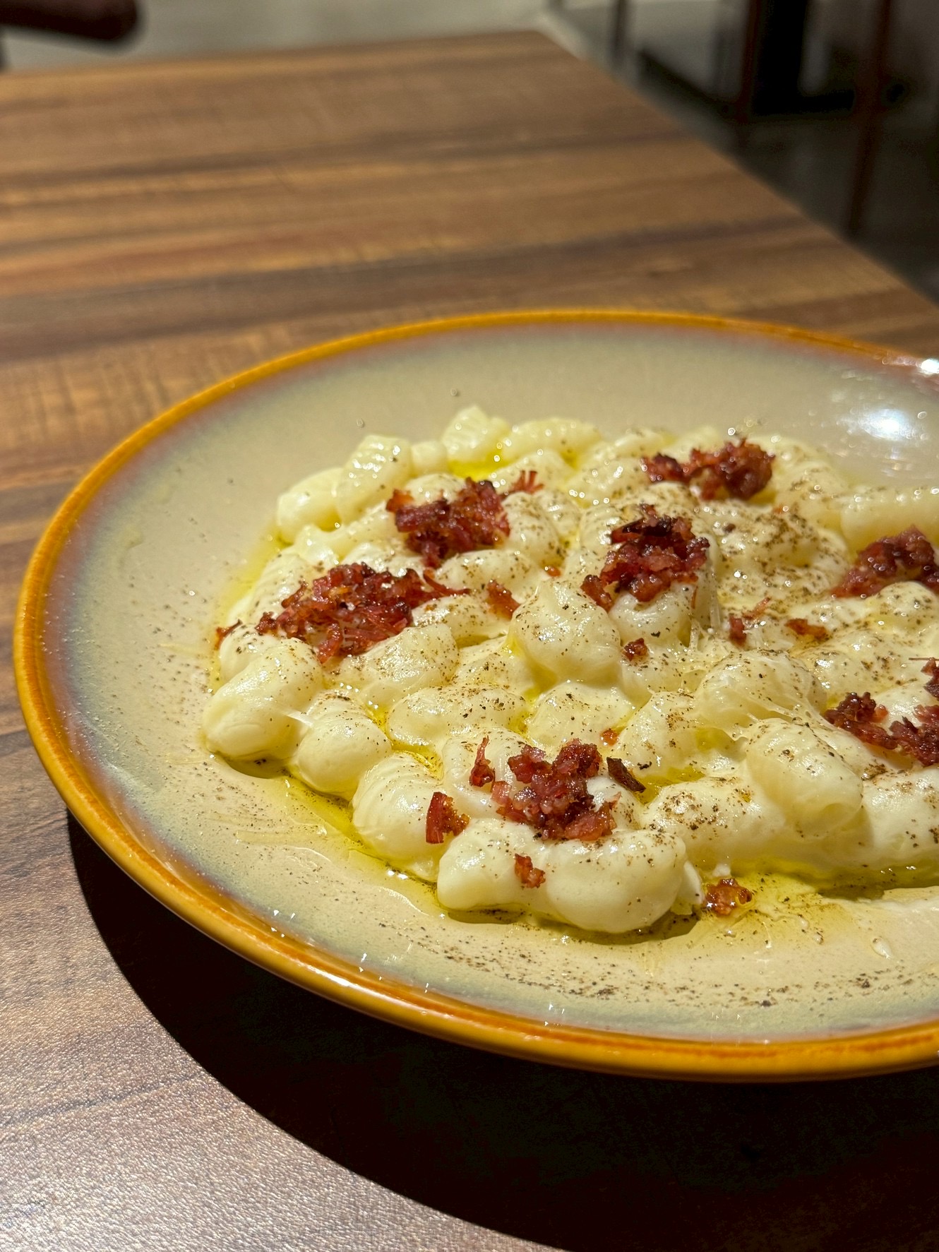 義式南瓜麵疙瘩/義大利起司醬——以烘烤南瓜的香甜做出柔軟麵疙瘩,搭配濃郁滑順的起司醬,掌握麵體口感與醬汁濃度的關鍵。