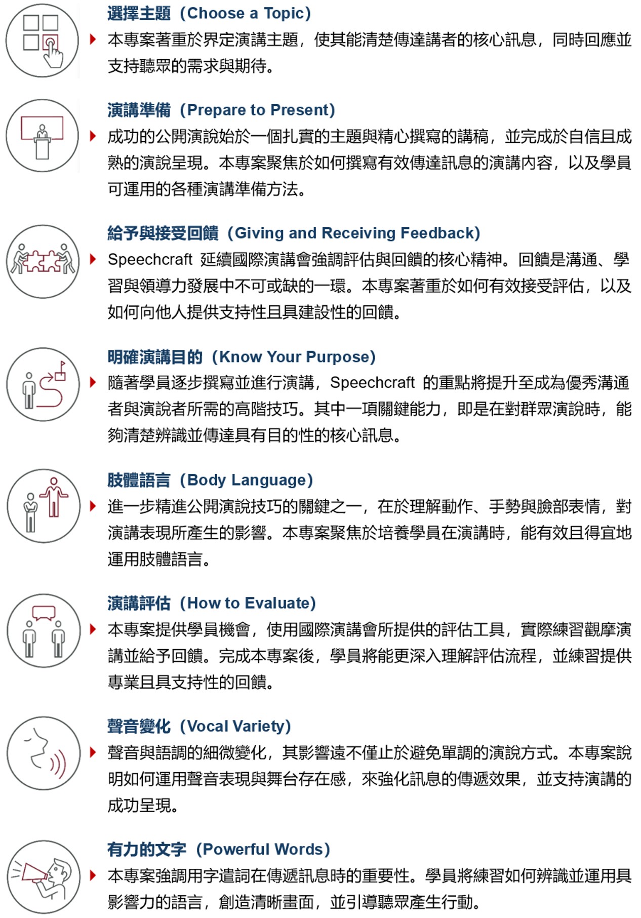 📚 採用美國 Toastmasters International 官方授權 Speechcraft 教材