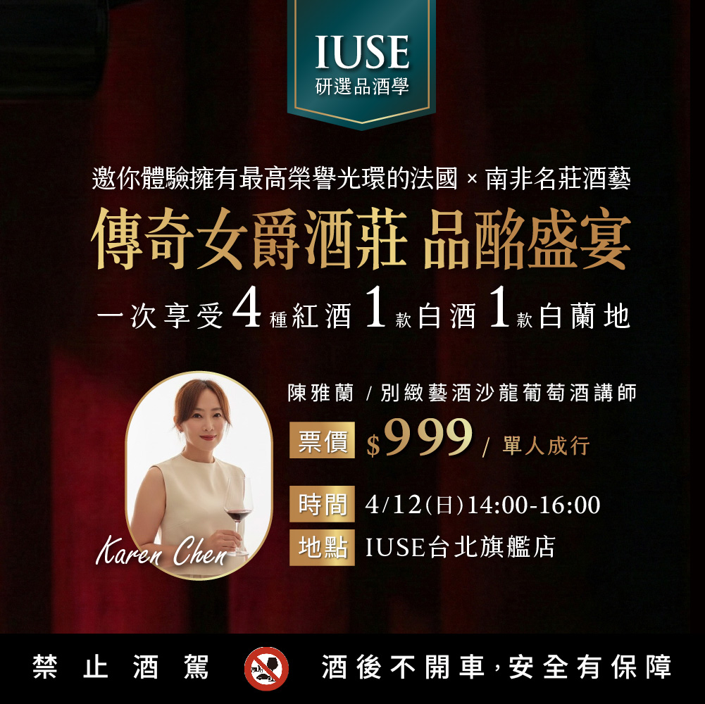※以上為滿班16人品酒酒單,未達16人及基本開班人數,IUSE保留變更本酒單內容或終止活動之權利