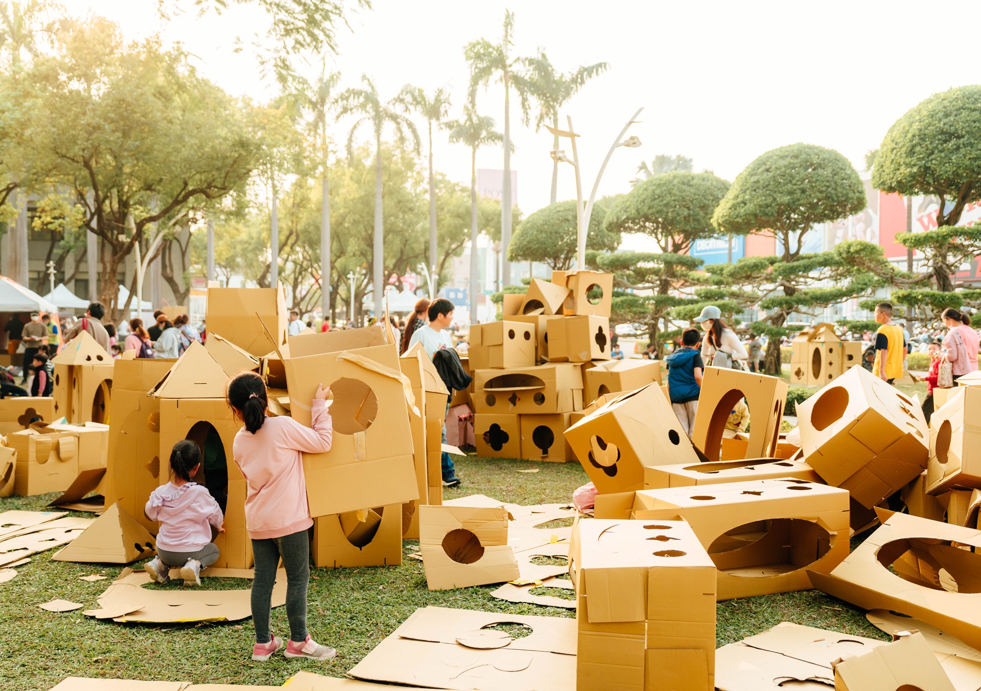 來這裡實現天馬行空的幻想吧!這裡有超多特殊造型的大紙箱,想打造城堡、機器人、盔甲、還是溫馨的家?一起用紙箱堆疊出屬於你的超大的作品~