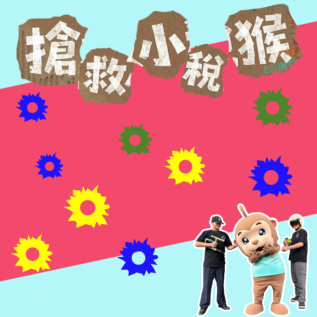 「搶救小稅猴」將租稅教育化為熱血救援:孩子闖過搶救前哨站取得闖關資格,闖過障礙並領取空氣槍灌注能量,最後精準擊倒目標完成任務。活動結合體能與腦力,讓孩子在趣味競賽中認識公民義務,化身正義的稅務小英雄。
