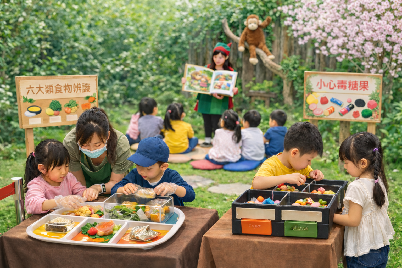 孩子化身森林小偵探,在健康森林認識六大類營養食物,找出真正健康的食物朋友,也學習辨識外表像零食的假零食陷阱。透過情緒故事選擇情緒精靈,體驗臉部彩繪與拍貼,在遊戲中學習健康飲食與表達自我。
