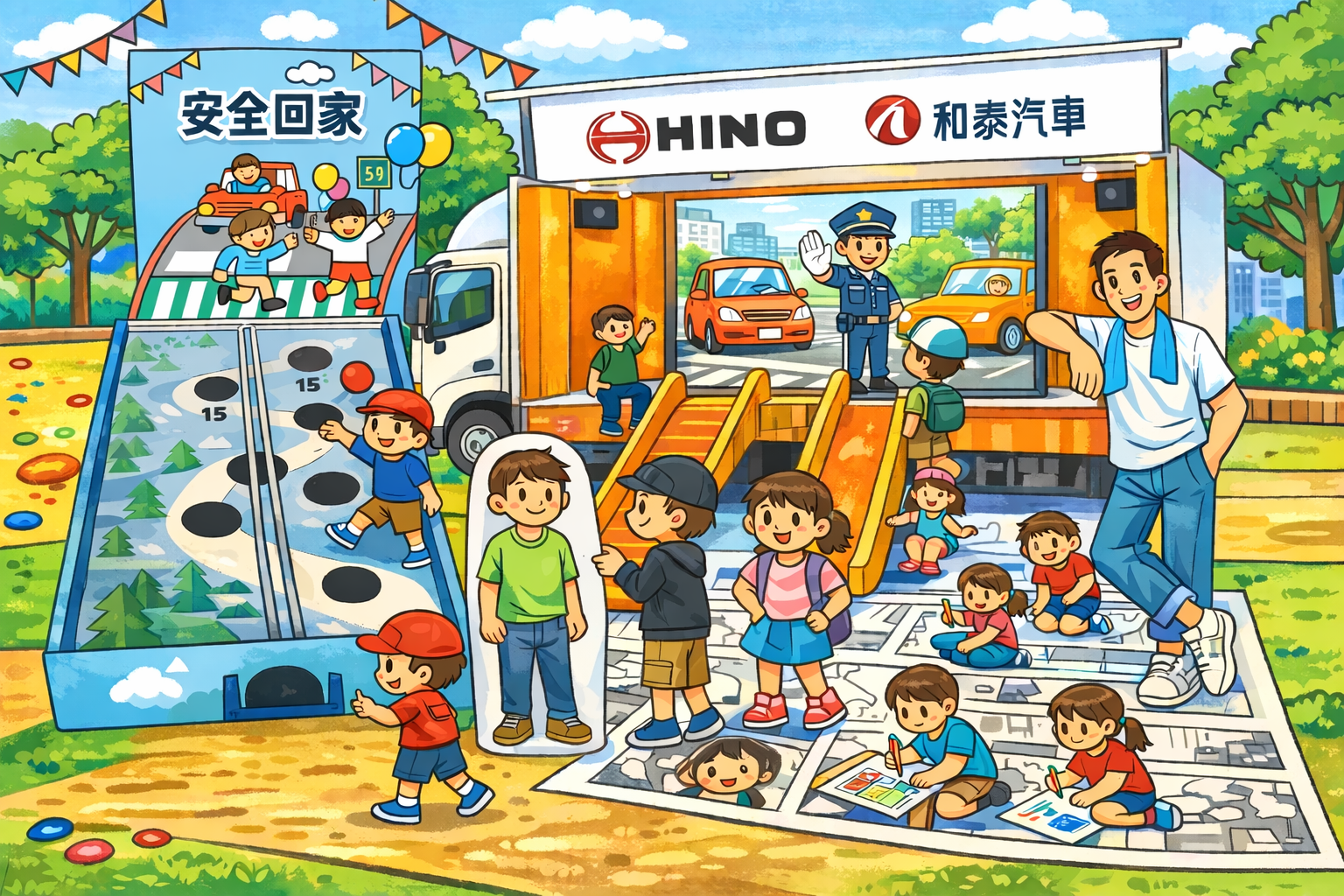 遊戲將結合HINO潮派行動號,設有大車視野盲區、溜滑梯區、道路情境體驗、還有彈珠台闖關及扭蛋小遊戲,結合教學與玩樂,把交通安全知識帶回家。