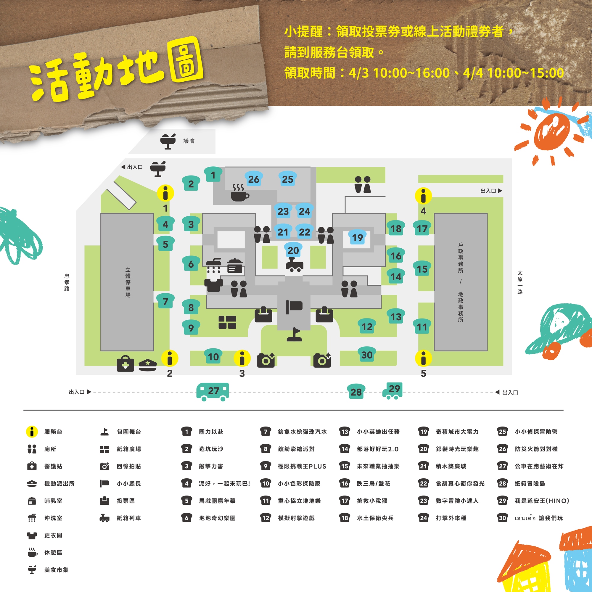 記得到服務台領取「活動地圖」與「投票券」,體驗完所有遊戲後到【投票區】把票投給你覺得「最好玩遊戲」的投票箱內,就能【驚喜一把抓】,能抓多少就帶多少零食回家喔!