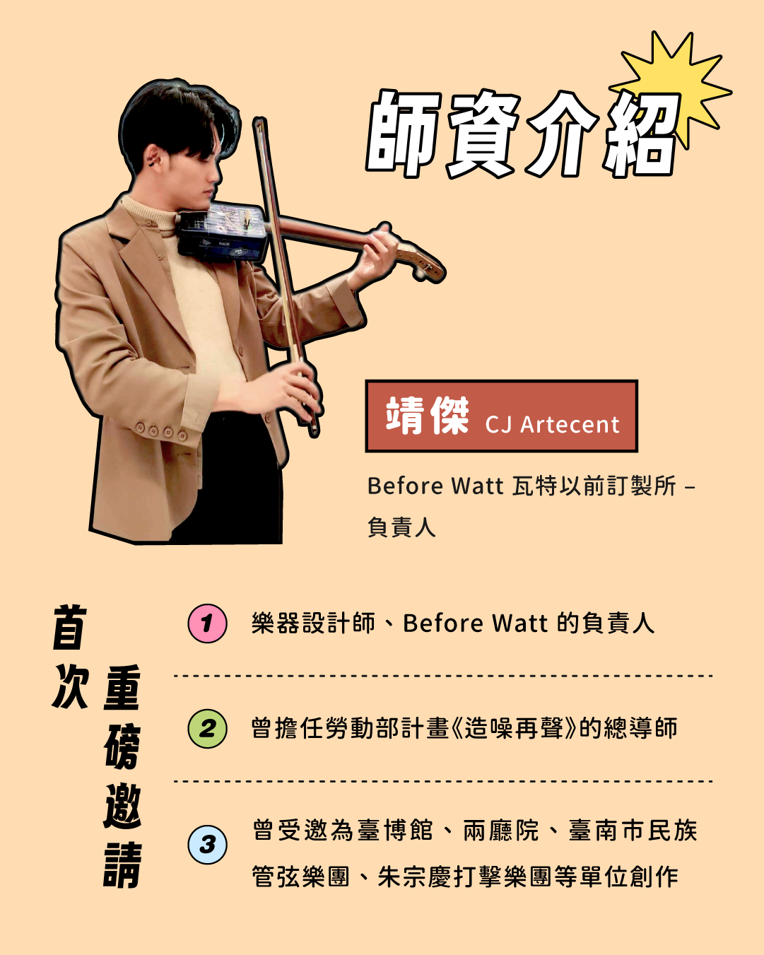 ・專業的樂器設計師-靖傑,帶著大家一起打造屬於自己的「樂器」🥳