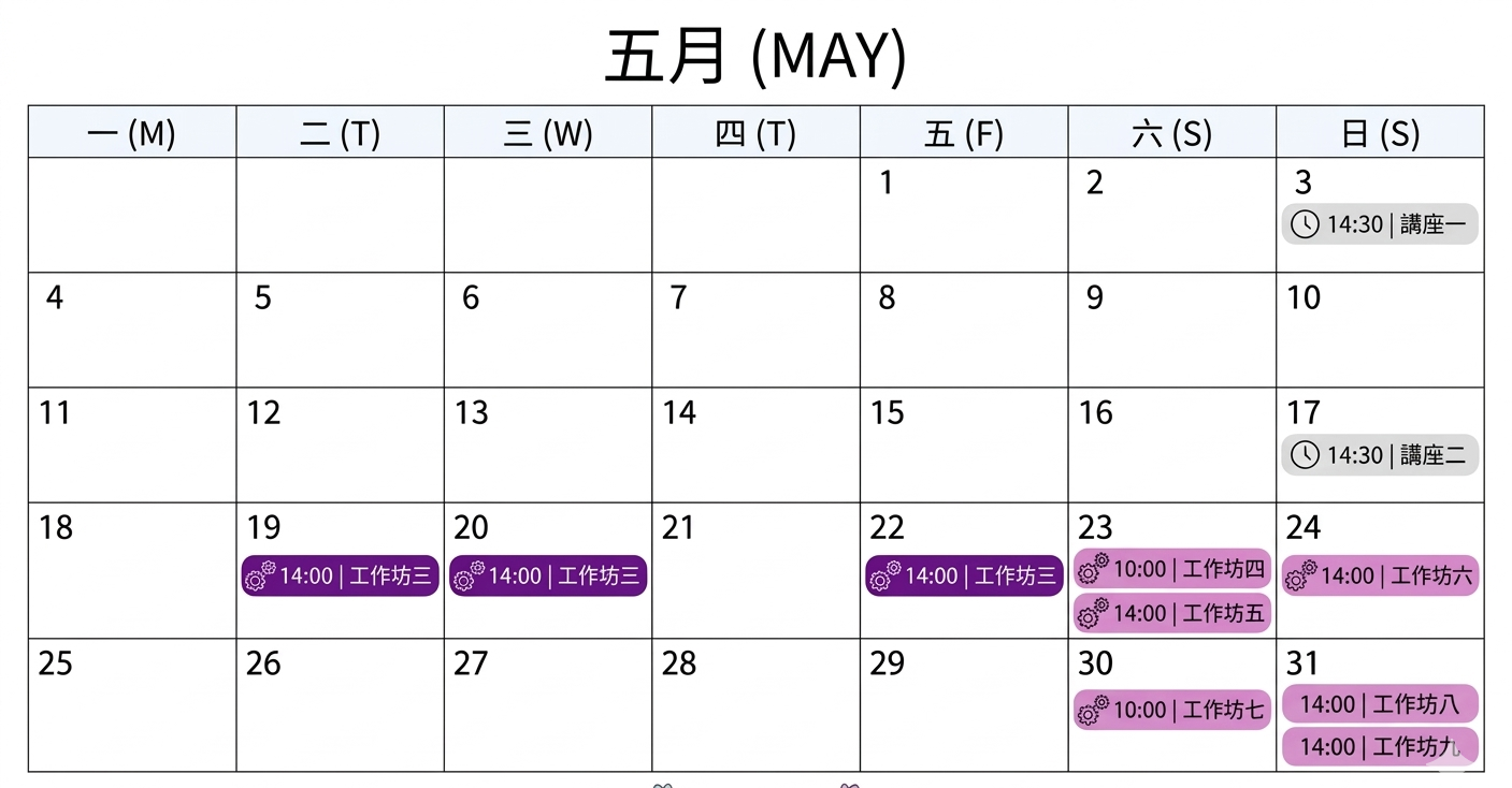 時間:5/30(六)14:00~17:00(13:30開放報到)