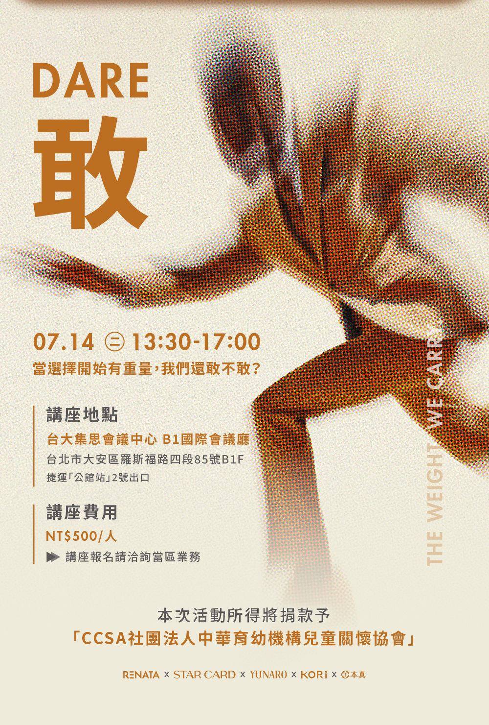 講座收入將全額捐獻予CCSA社團法人中華育幼機構兒童關懷協會,