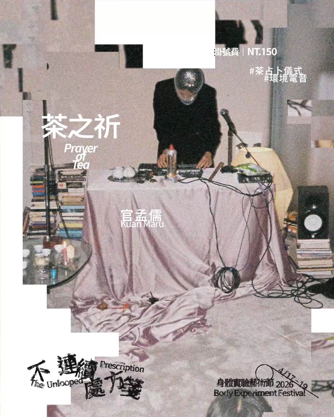 創作者將以身體為媒介,透過聲音與呼吸節奏的堆疊,如訊號般穿越時間的召喚,最後在茶占卜儀式中,回應個體內在未完成的情緒,透過致謝、直視與象徵性的釋放,重新看見自己當下的狀態。