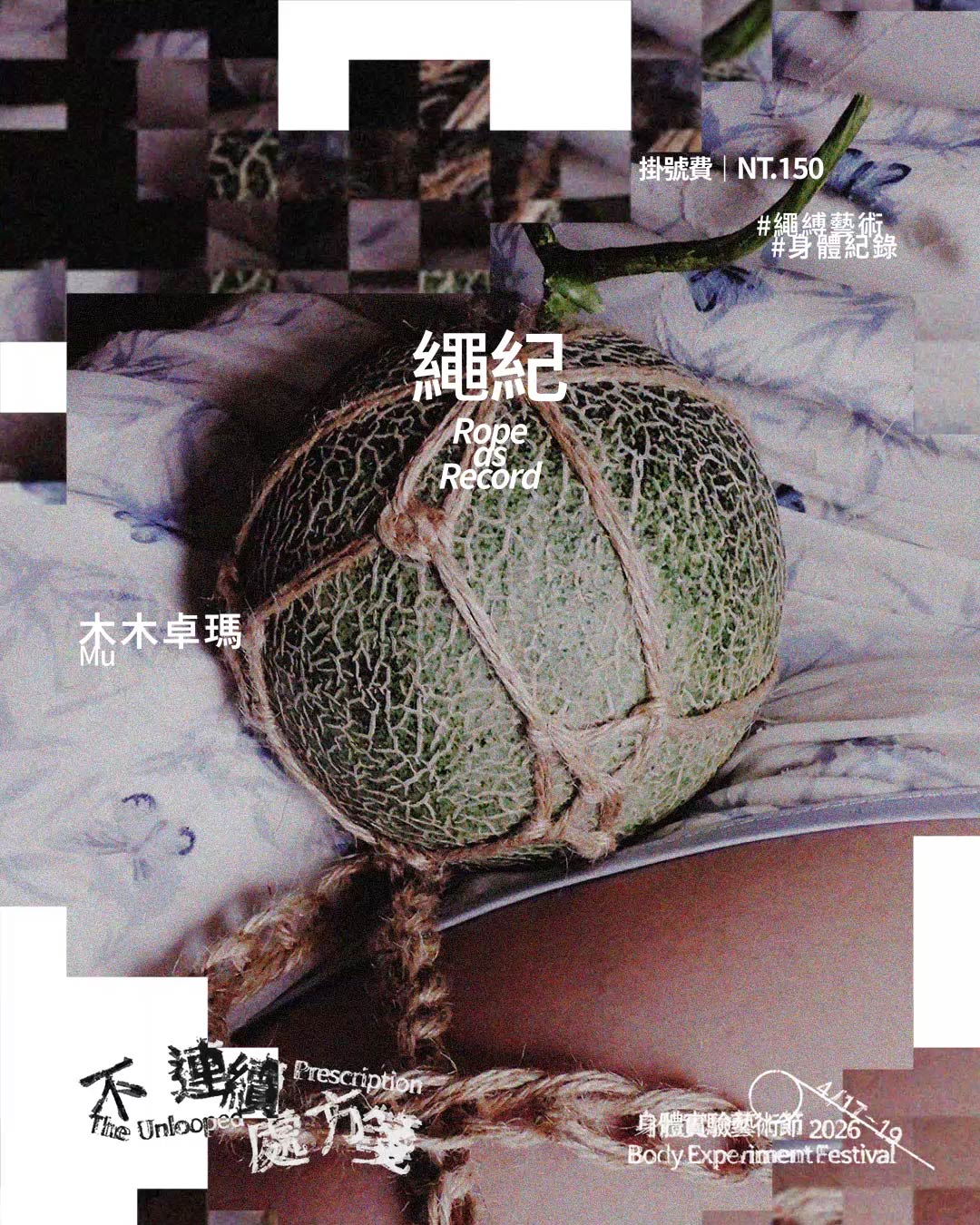 《繩紀》以繩子作為載體,重新思考「力」如何在身體之間發生並留下痕跡。在繩手與受縛者之間,力量透過拉扯、承受與呼吸,被轉化為一種可被感知的身體經驗,當繩子繫上身體、逐漸收緊,再鬆開,留下的不只是皮膚上的繩痕,而是一種力量曾經停留於身體之中的狀態。