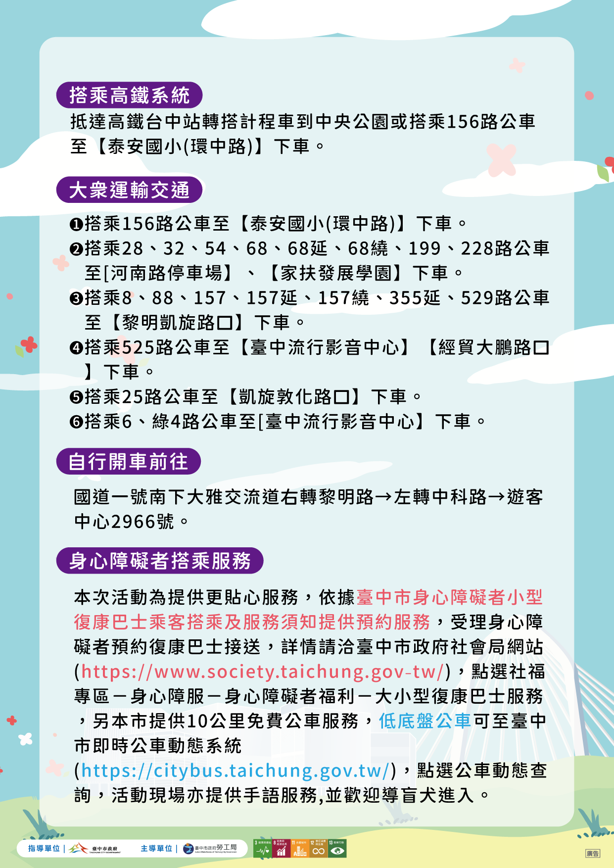 ➤活動地點:台中中央公園(敦化路二段、凱旋路)