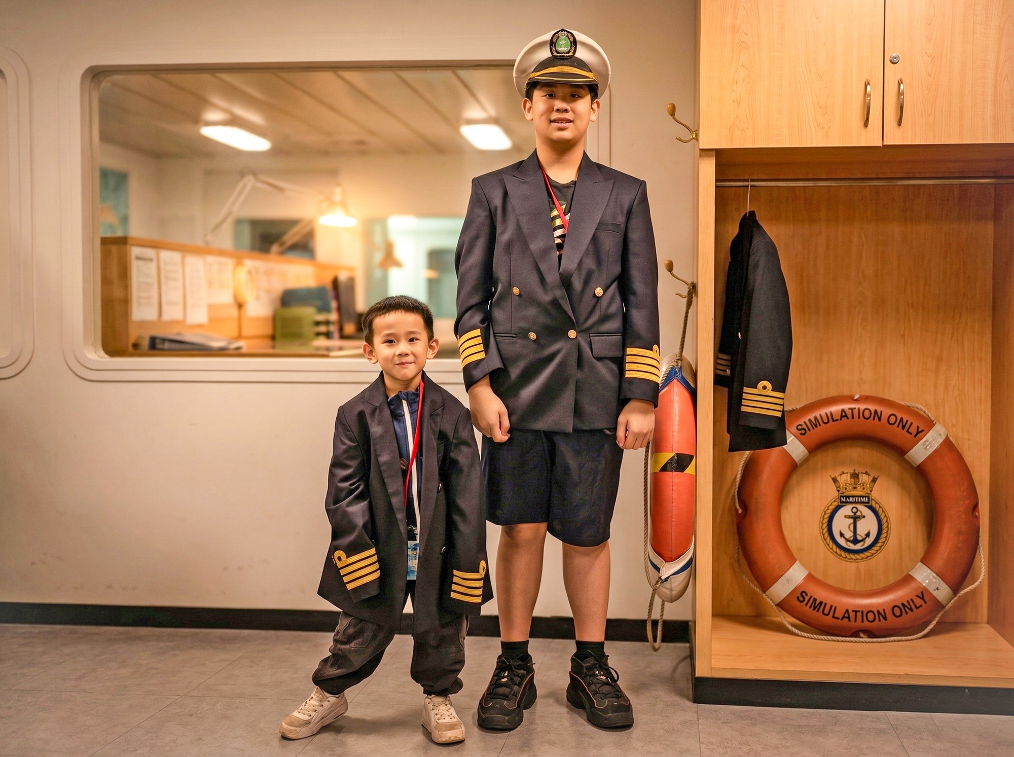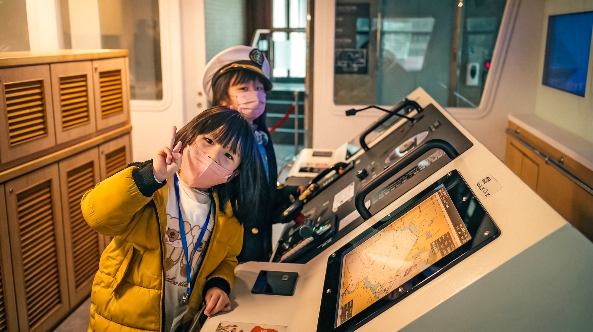 除此之外,還有船長室的模擬面版,可以透過體驗駕駛,體驗船長的工作,也可以換裝成帥氣的船長或大副,拍照留念。