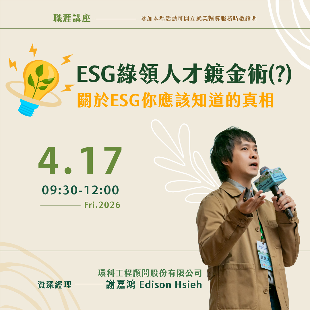 【職涯講座】(上午場) ESG綠領人才鍍金術(?)-關於ESG你應該知道的真相