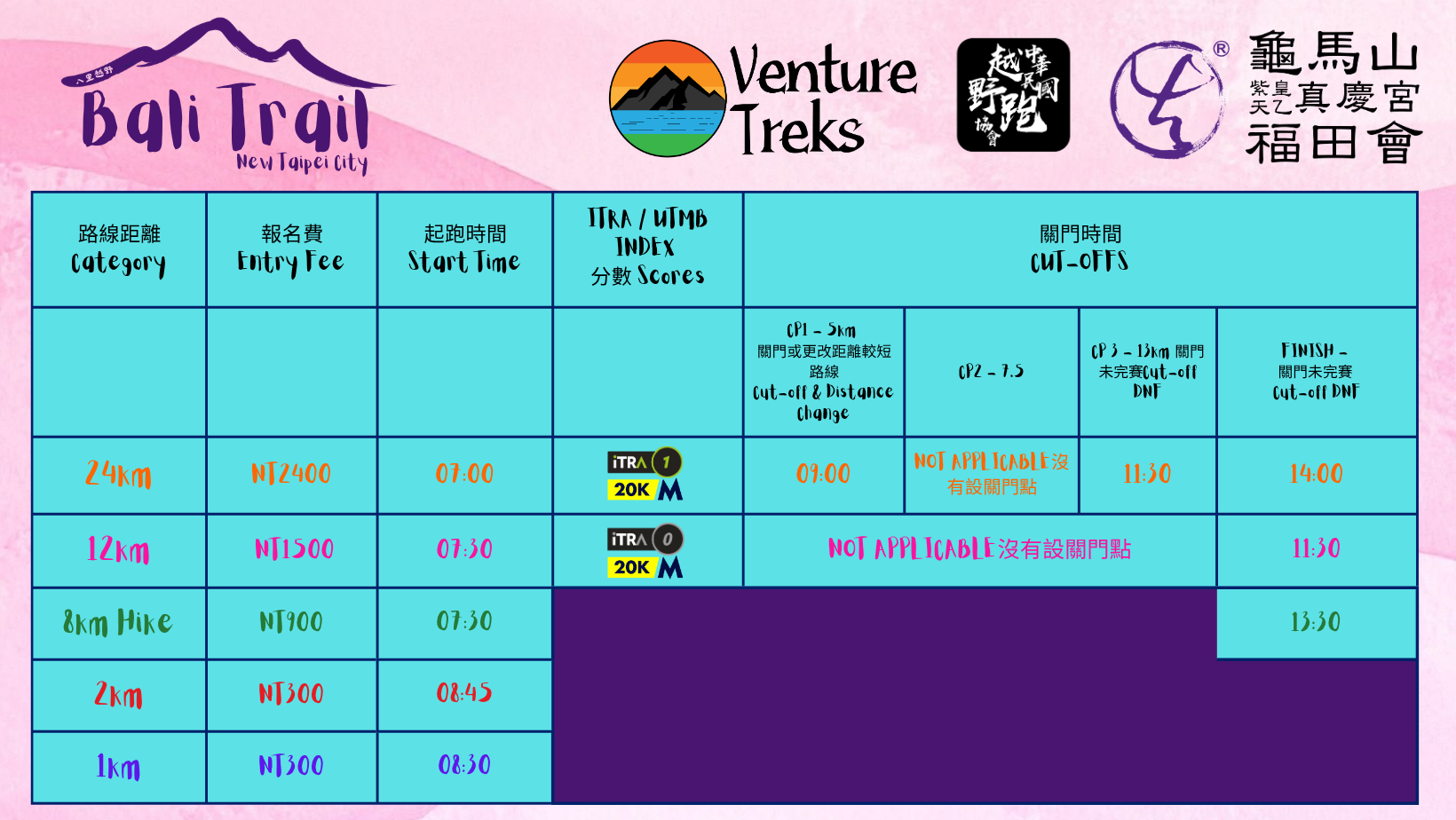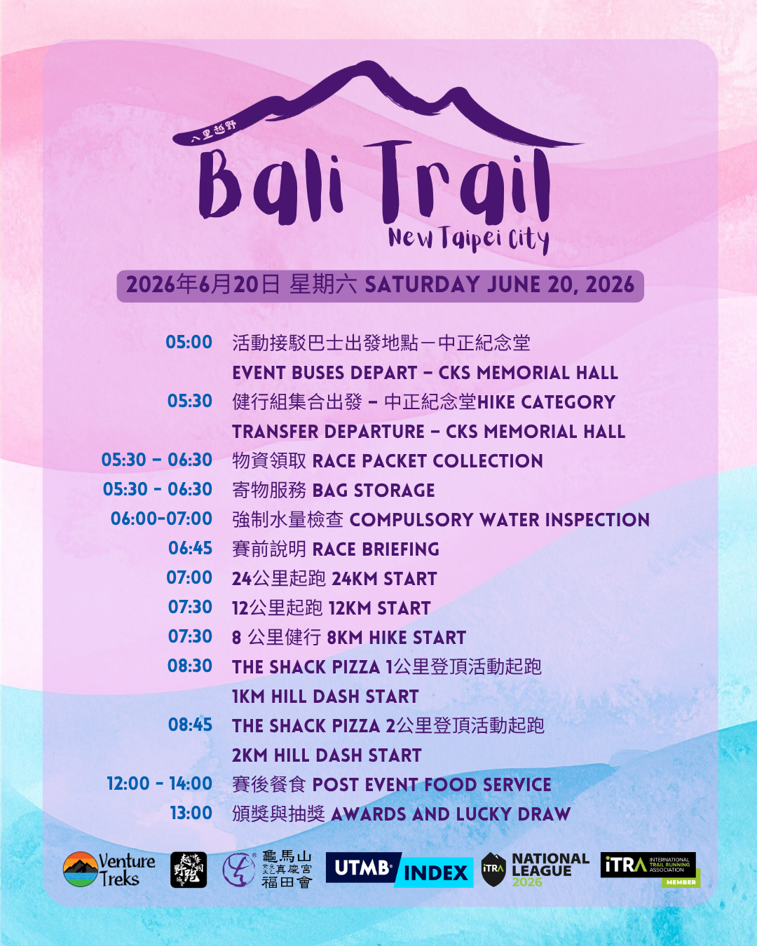 如果你已經準備好迎接夏季越野挑戰,那麼 2026 Bali Trail 八里越野 將會是你測試自我、享受山林風景的絕佳機會。我們提供多個精彩組別,結合具有挑戰性的爬升、美麗壯觀的景色,以及令人難忘的活動氛圍。