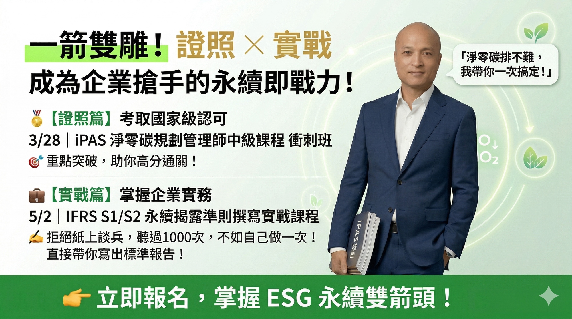 2026年8月9日iPAS 淨零碳規劃管理師中級衝刺班課程(實體+直播+影片+講義+題庫)