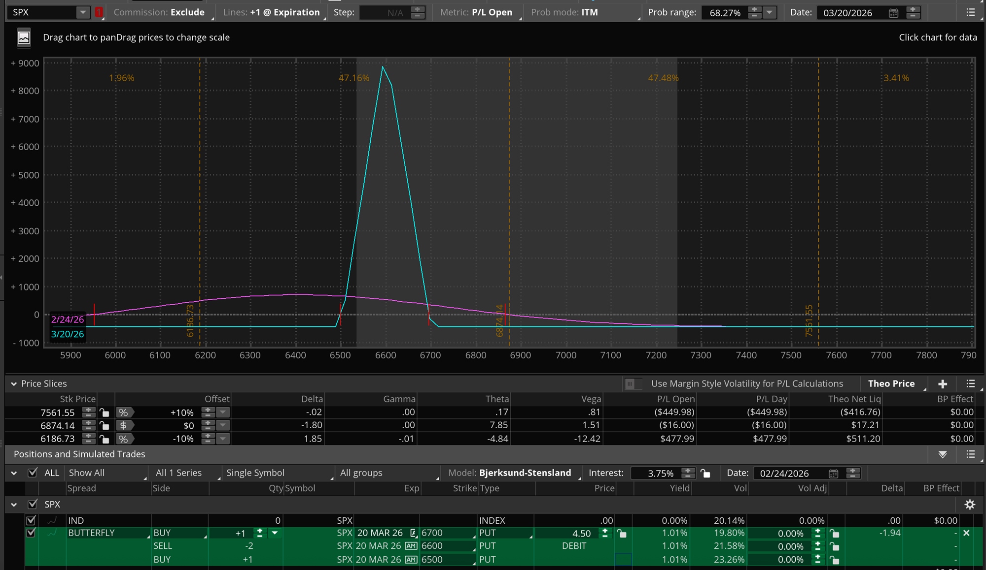 在看空市場的情況下,透過 Butterfy 策略達到良好的避險效果